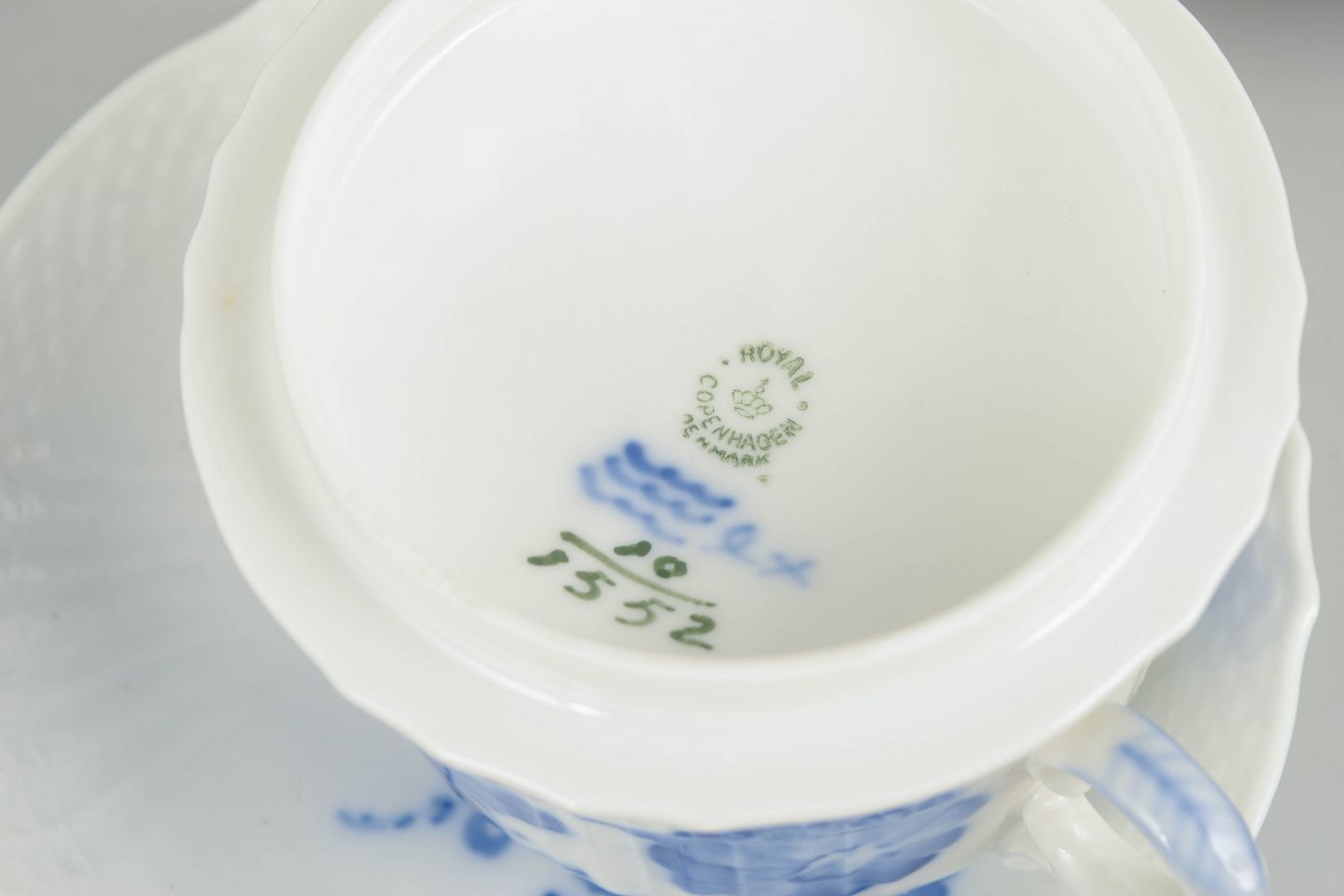 Royal Copenhagen Blue Flower Curved, set of four bouillon cups with matching saucers.