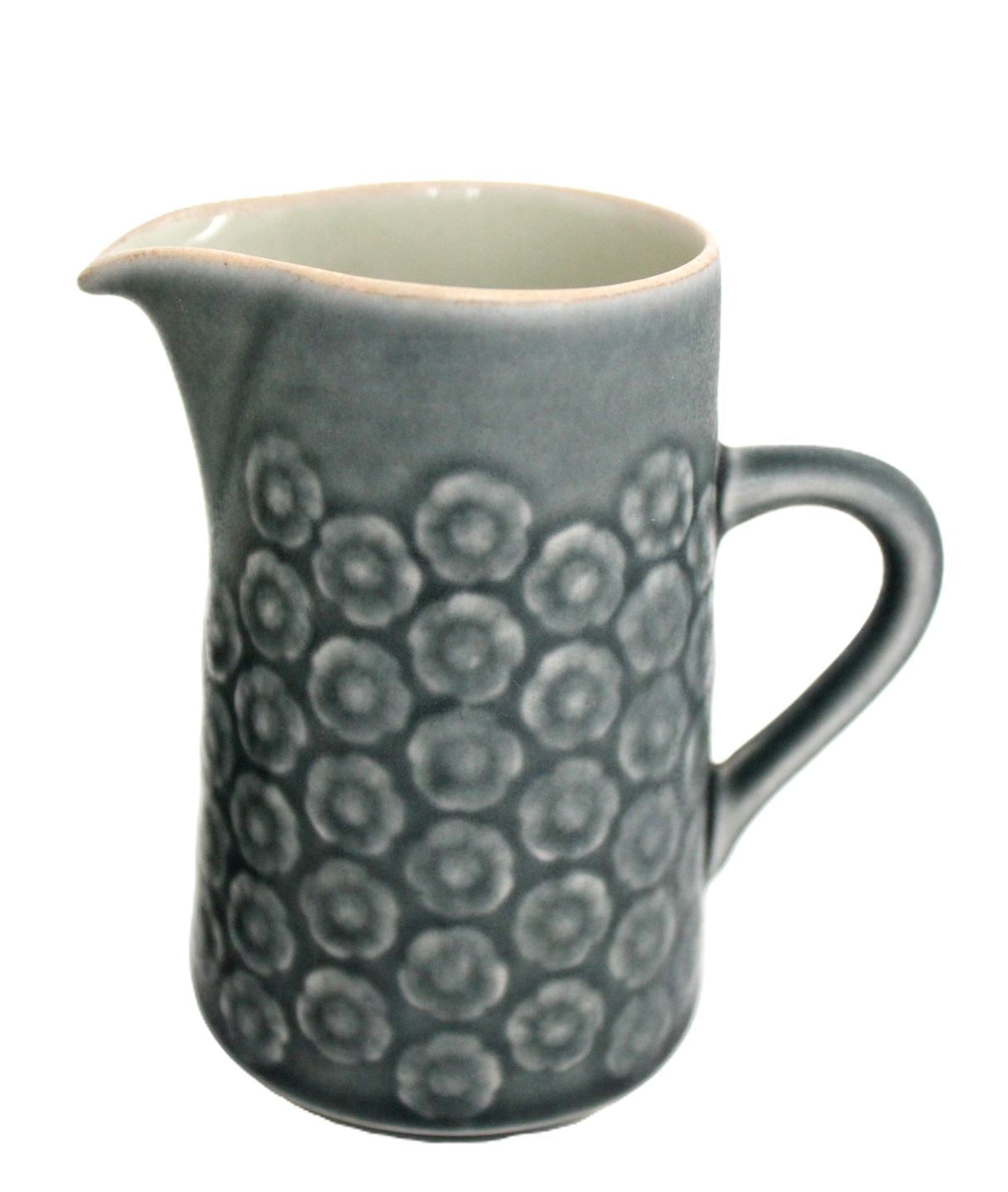 Text available in Danish: Kronjyden/Nissen/Bing & Grøndahl, Azur. Designet af Jens Harald Quistgaard. Flødekande. Højde 10,5 kr. Flot stand, mint condition. Ingen krakeleringer. Pris: 400 kr. stk. Lager: 1