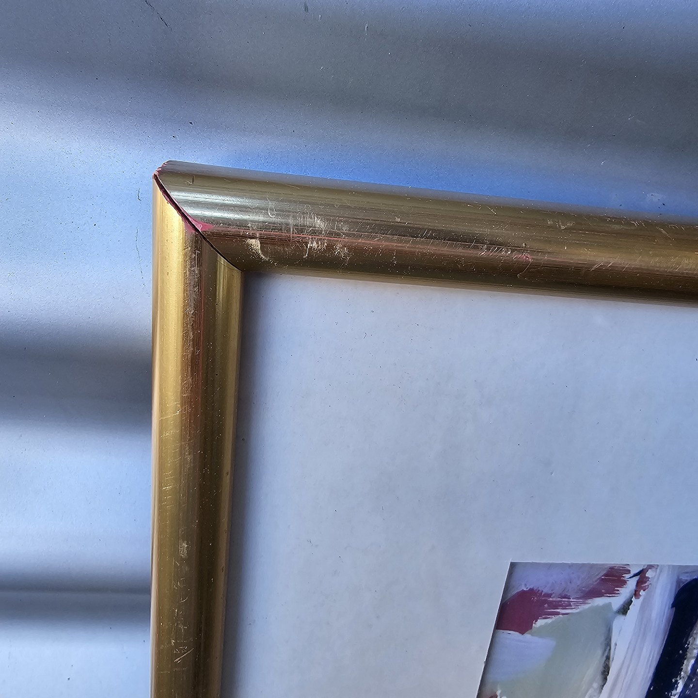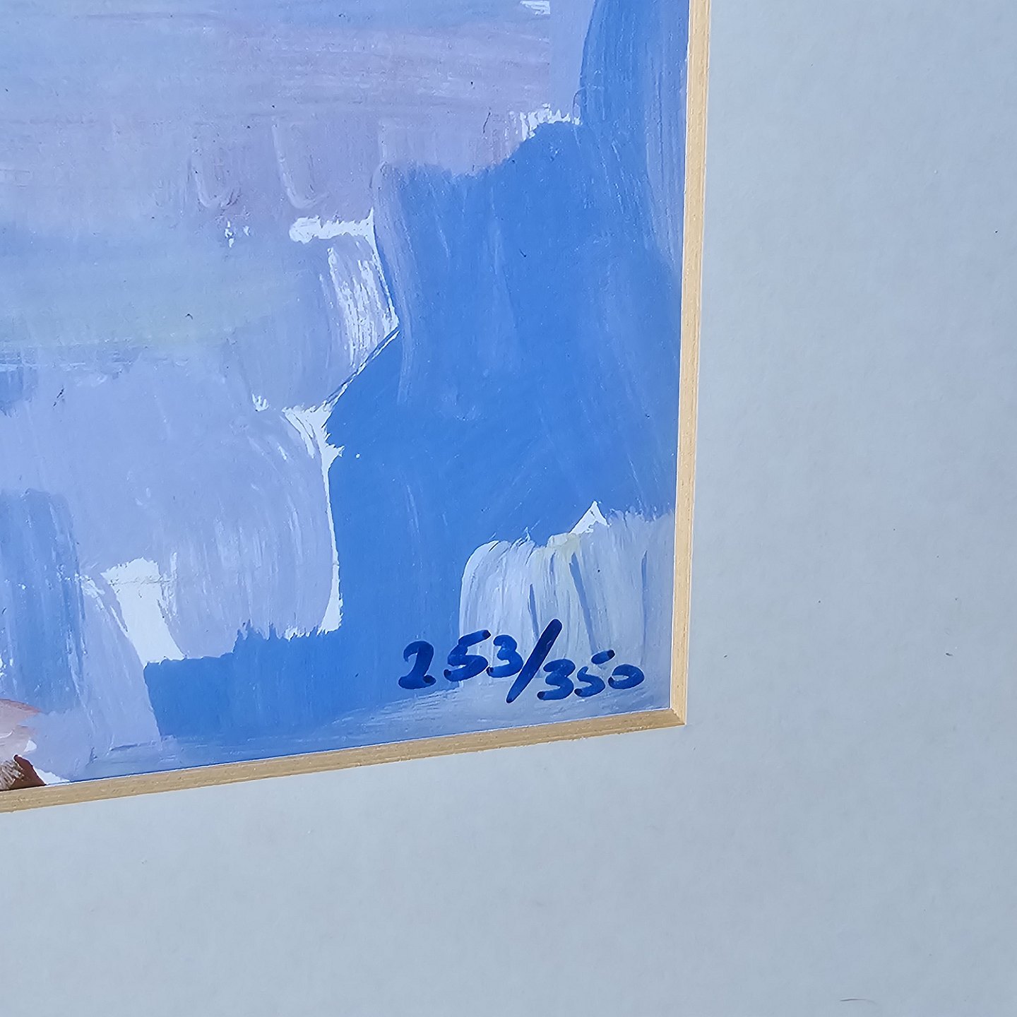 Litografi med motiv af et havnemiljø i guldmalet træramme. Nr. 253/350, dateret 1992