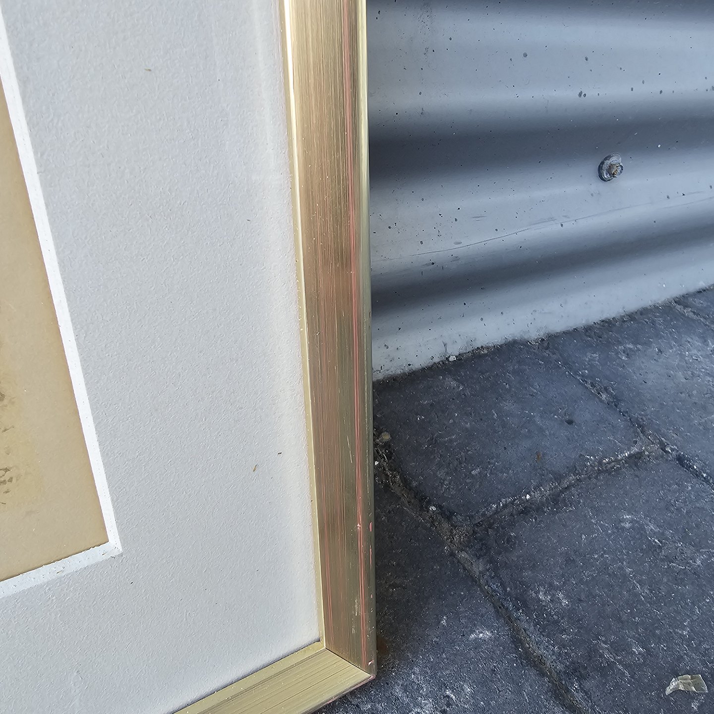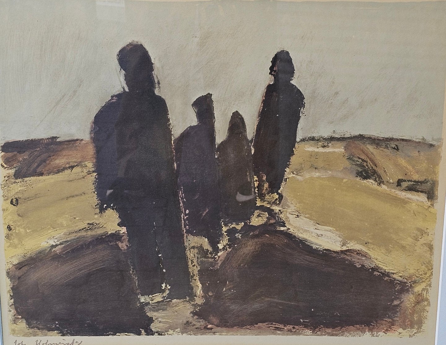Litografi med motiv af mennesker på en hede monteret i guldmalet træramme