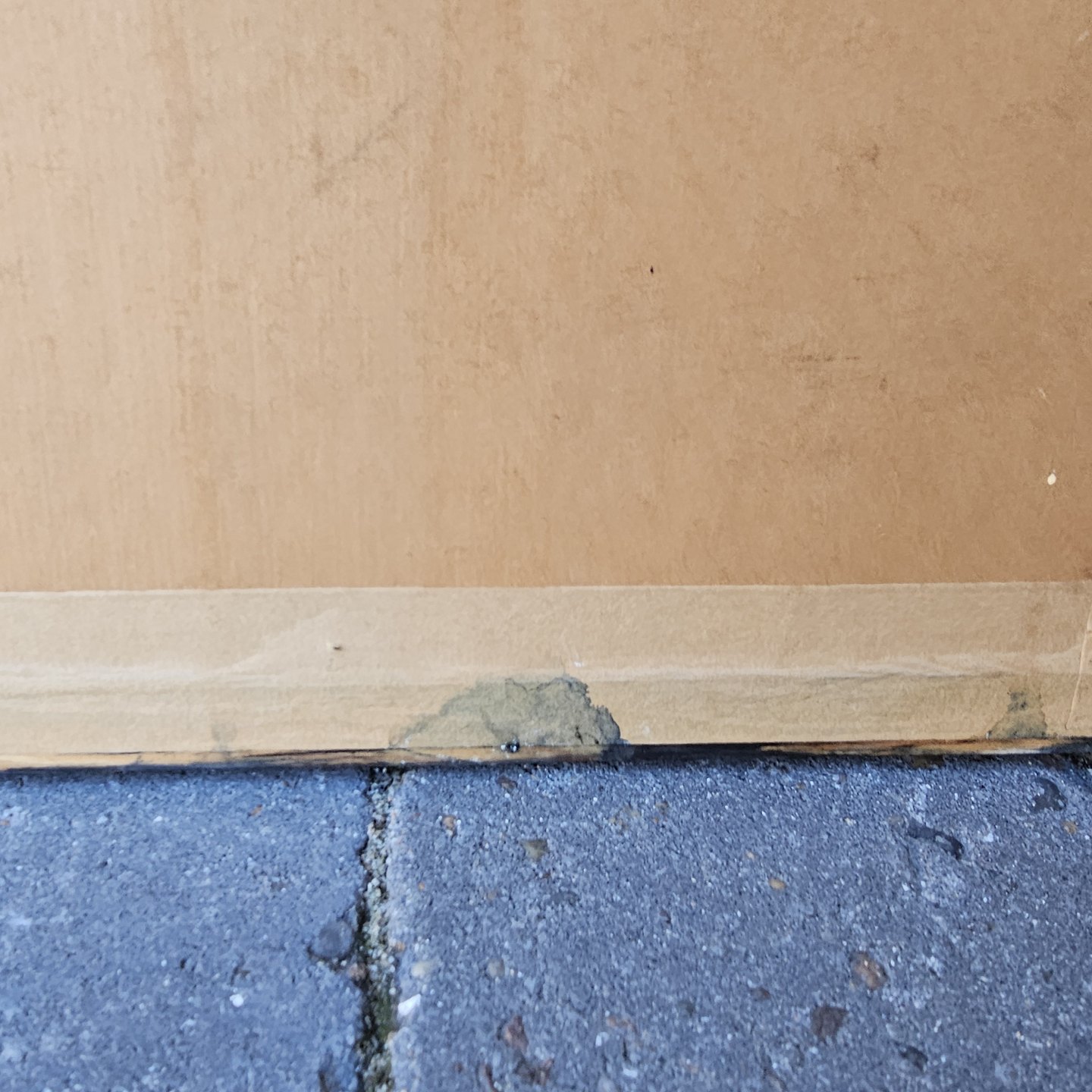 Fremstår med brugsspor på rammen og nålemærker i papiret