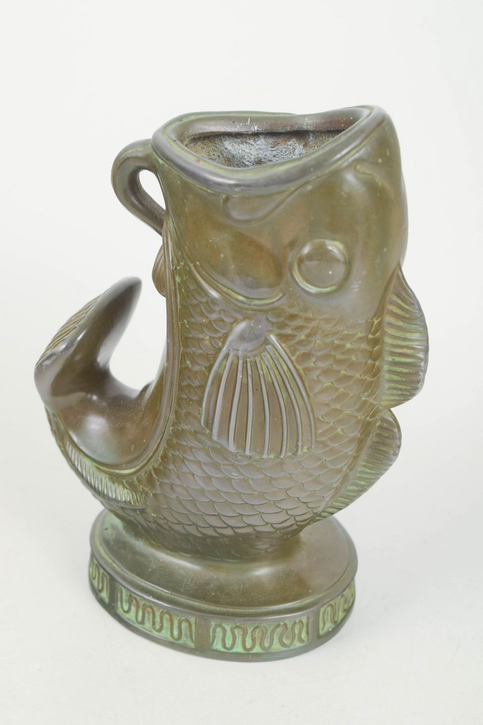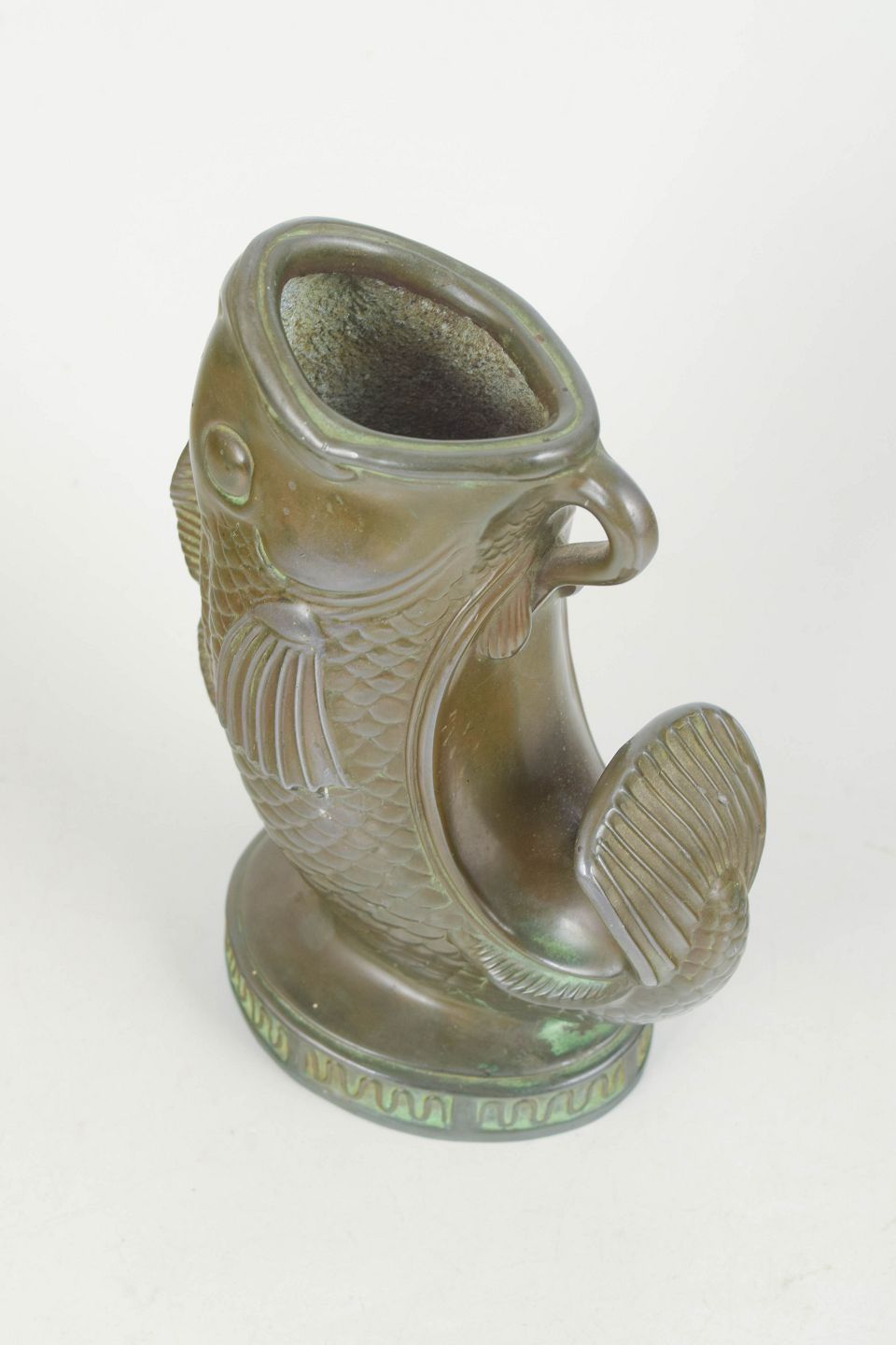 Sculptural fish figure in disko metal, executed in a striking and decorative art deco design. Model 2193.