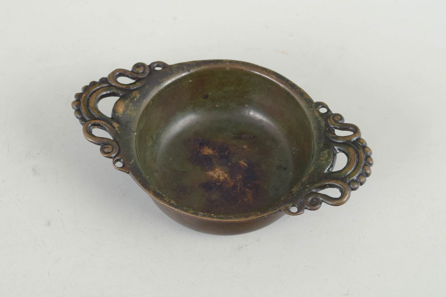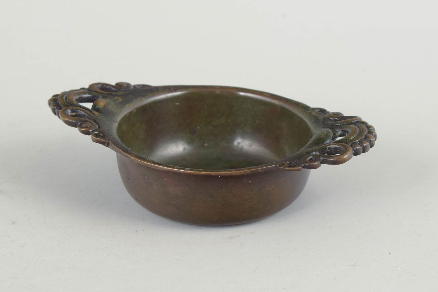 Small bowl in bronze with decorative handles and organic details in a characteristic art deco design. Model B33.