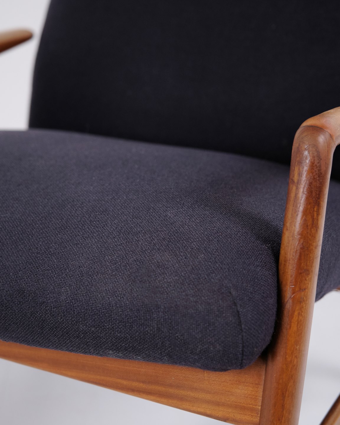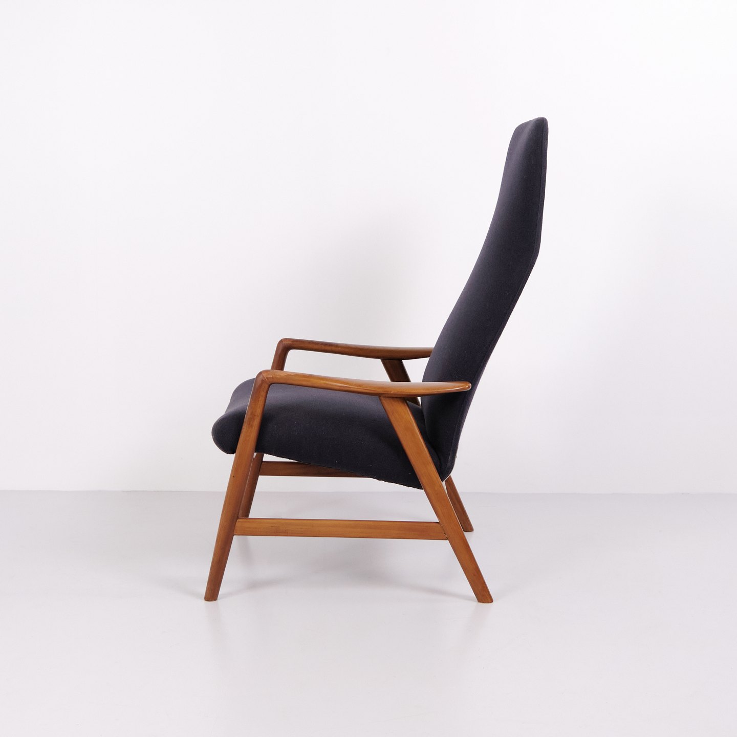 Contour Set 327 lounge chair designed by Alf Svensson for Ljungs Industrier AB, Sweden. Frame made of teak with original upholstery. The backrest can be adjusted in three different positions. Original label preserved underneath the seat. Alf Svensson was a Swedish furniture designer active from the 1950s to the 1970s and known for furniture in the Scandinavian modern style.