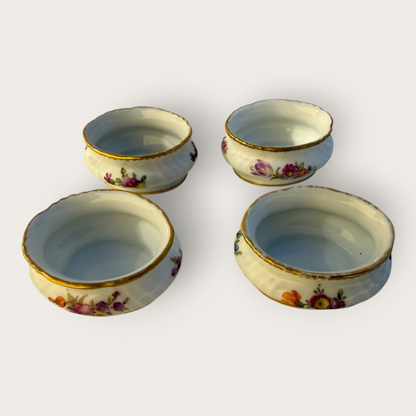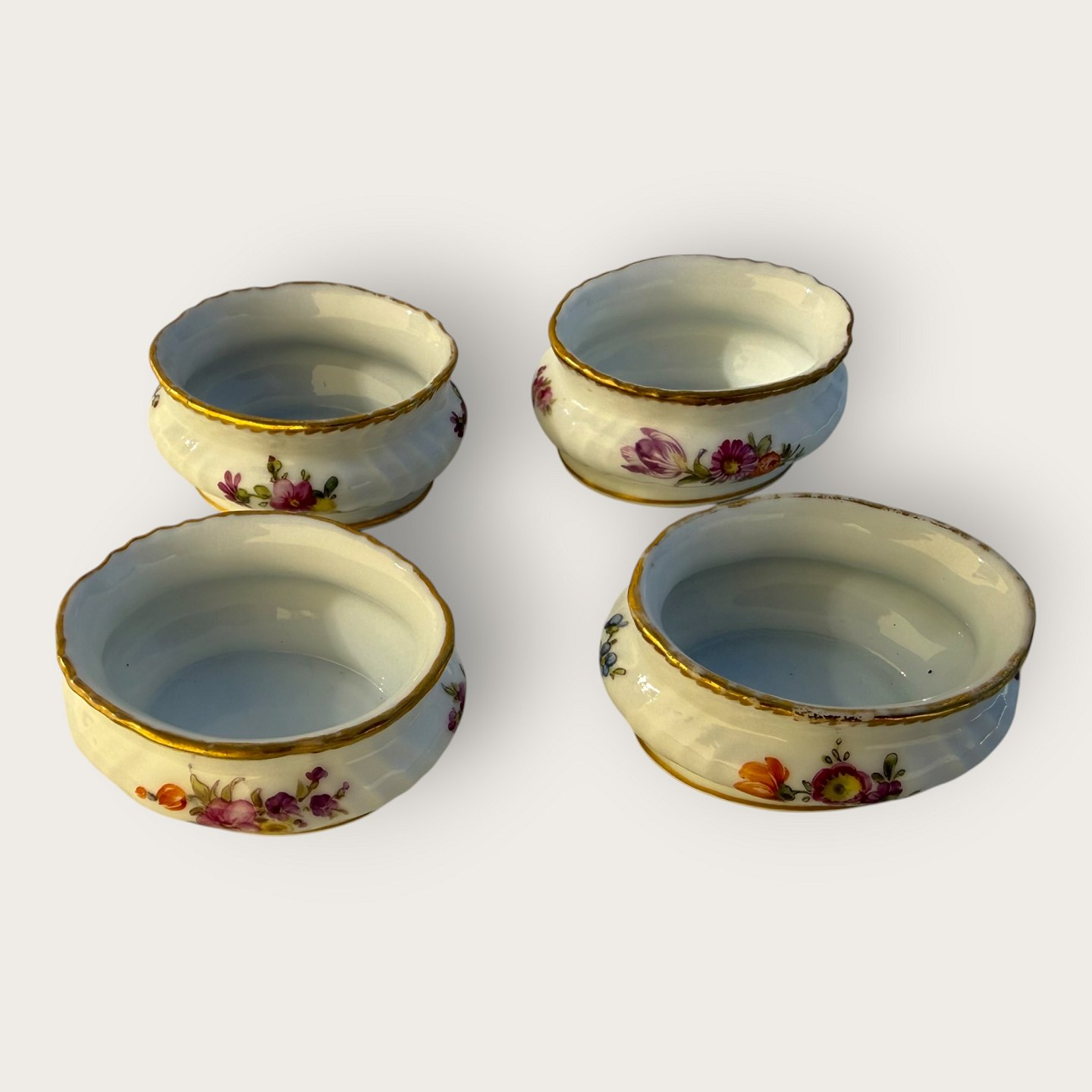 Royal Copenhagen, Full Saxon flower, small salt bowl, # 4/1646, Dimensions: 6x3cm *One with a little wear on the gold edge, otherwise in good condition*