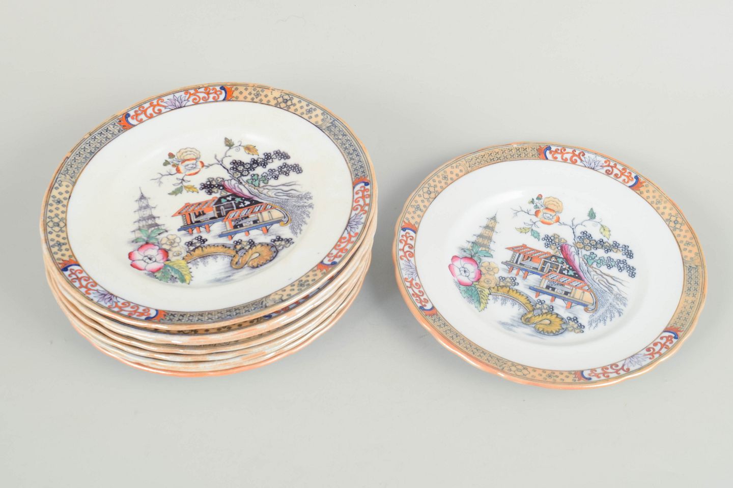 Lunch plates in faience with oriental-inspired decoration in polychrome colours and finely detailed painting in Japanese style, characteristic of Rörstrand’s japonisme production from the early 20th century.