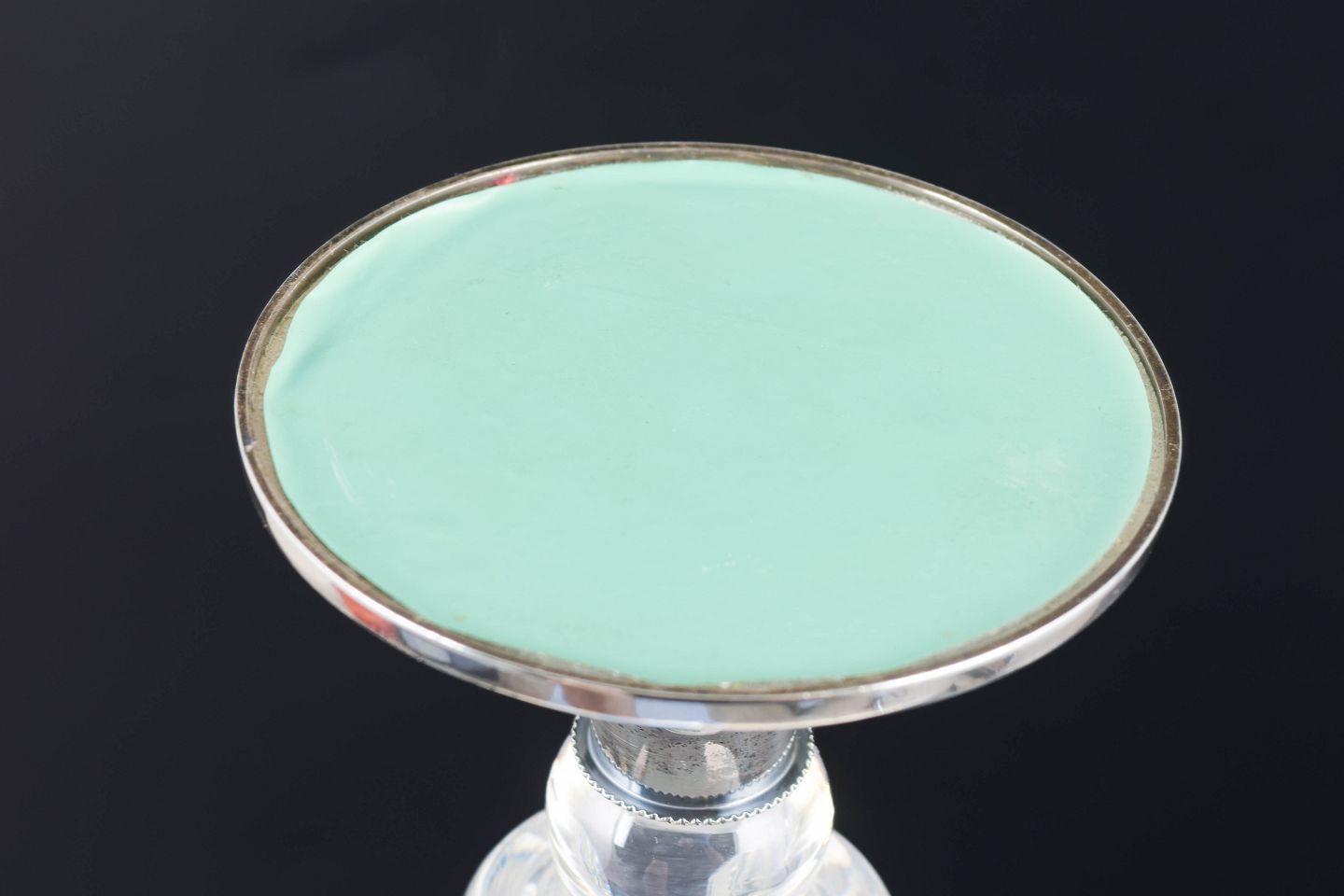 Modernist vase in cut crystal with a geometric pattern and base in 813 silver. The design features a clear, architectural structure characteristic of Finnish glass design of the period.