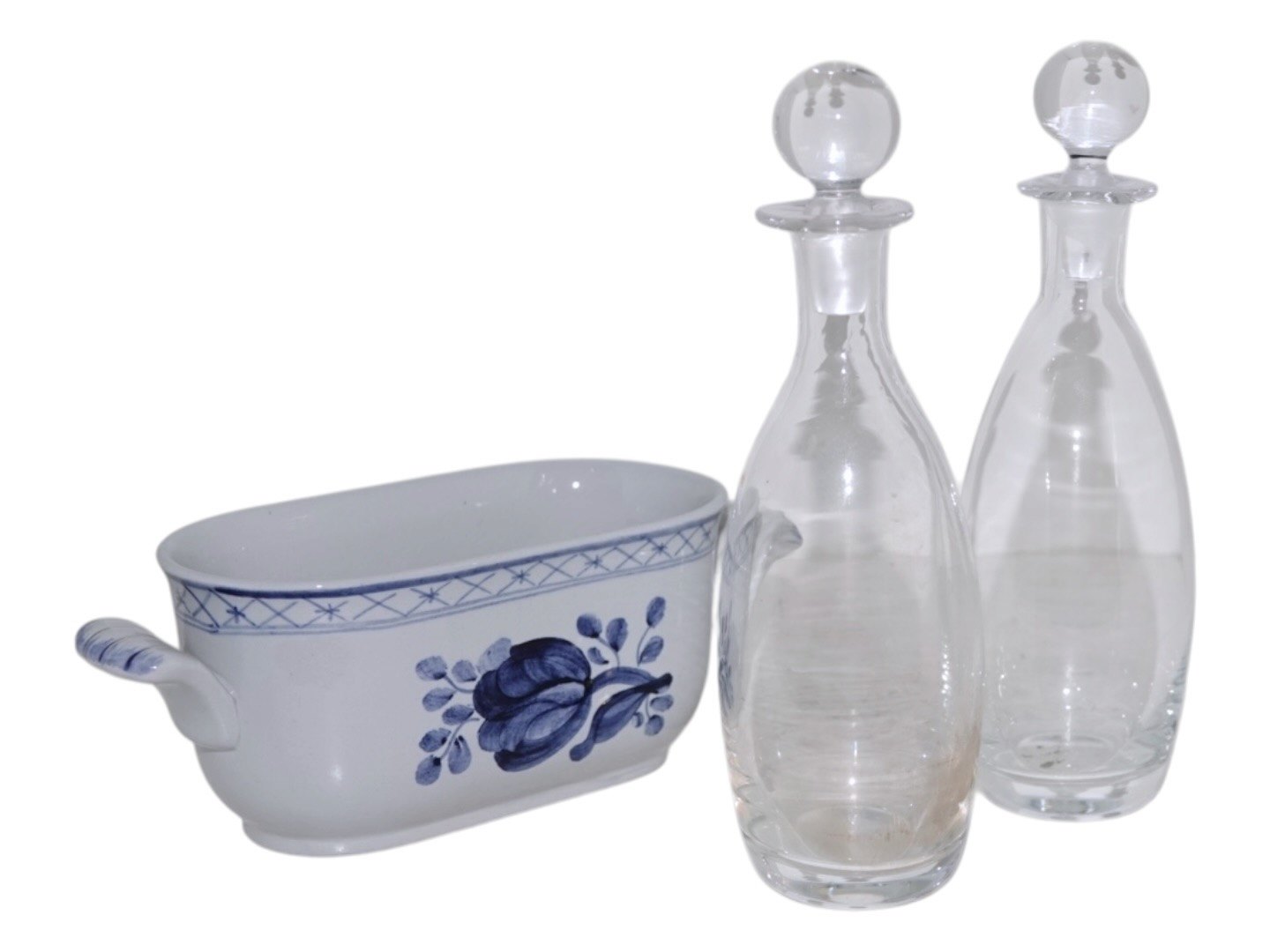 There are a little remains on one bottle, please see the picture, otherwise perfect condition with no chips, cracks or repairs.