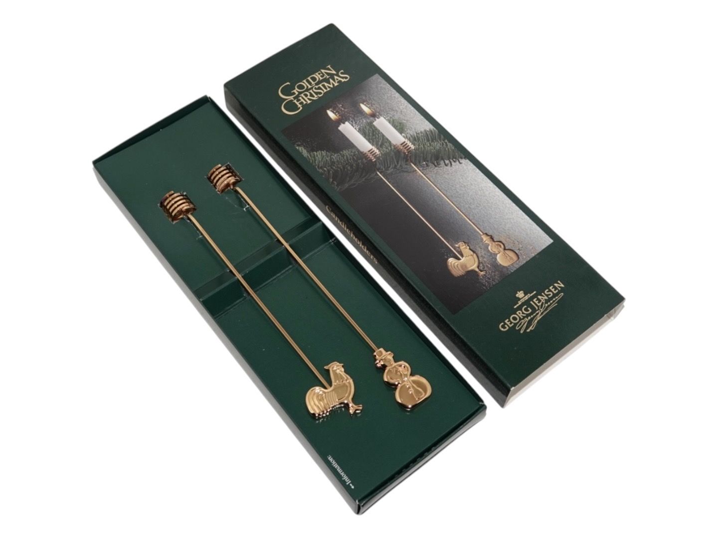 Georg Jensen Golden Christmas Candle Holder, snowman and cockerel from 1999.