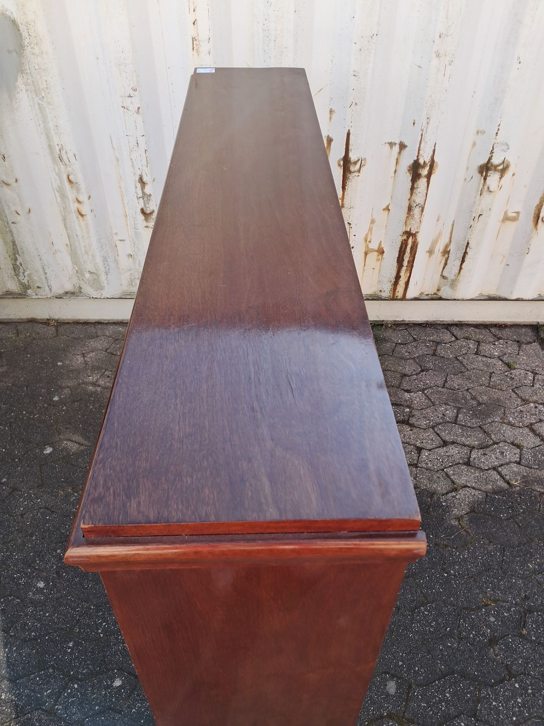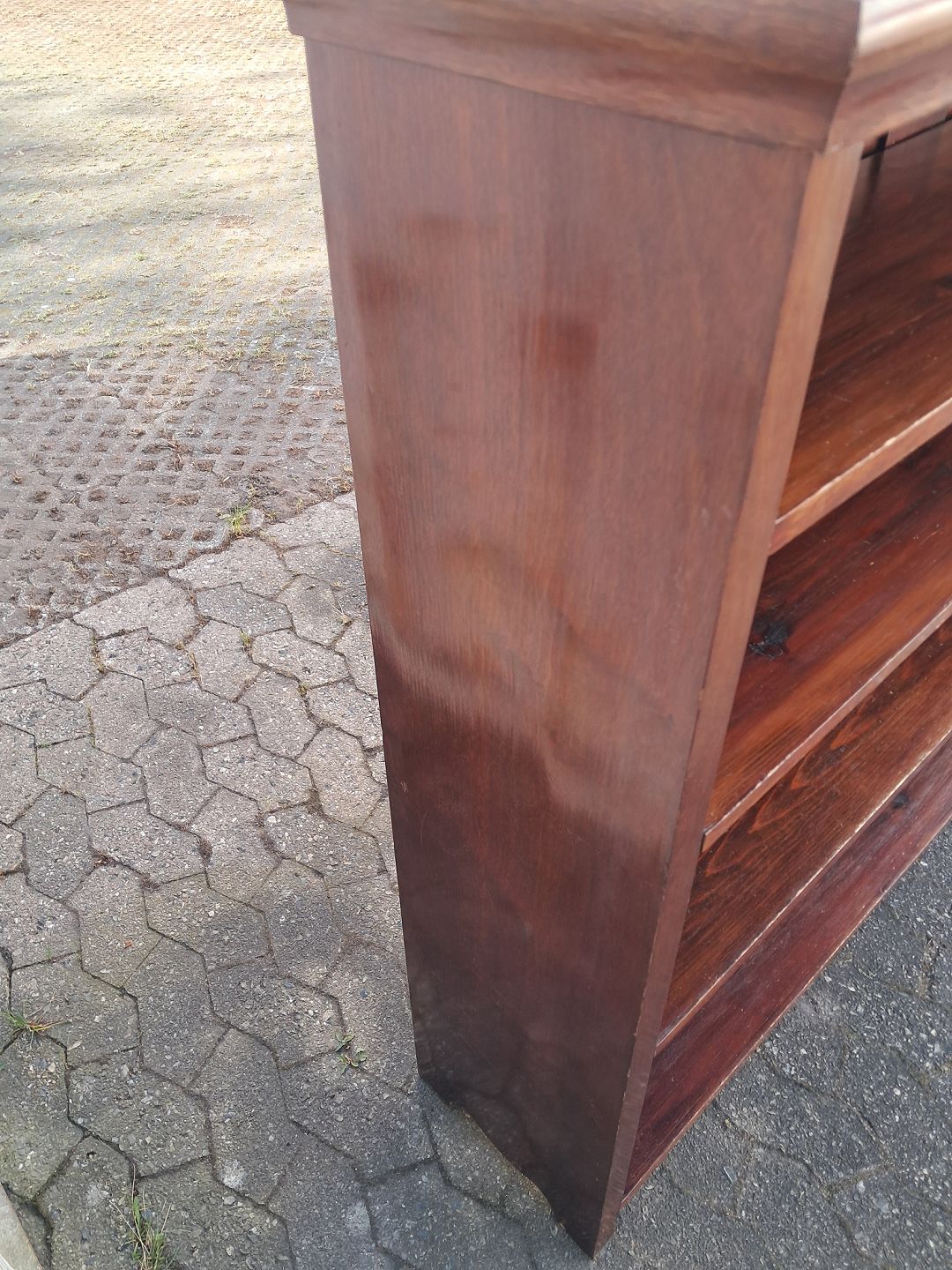Reol i fineret mahogni, fra 1910erne.