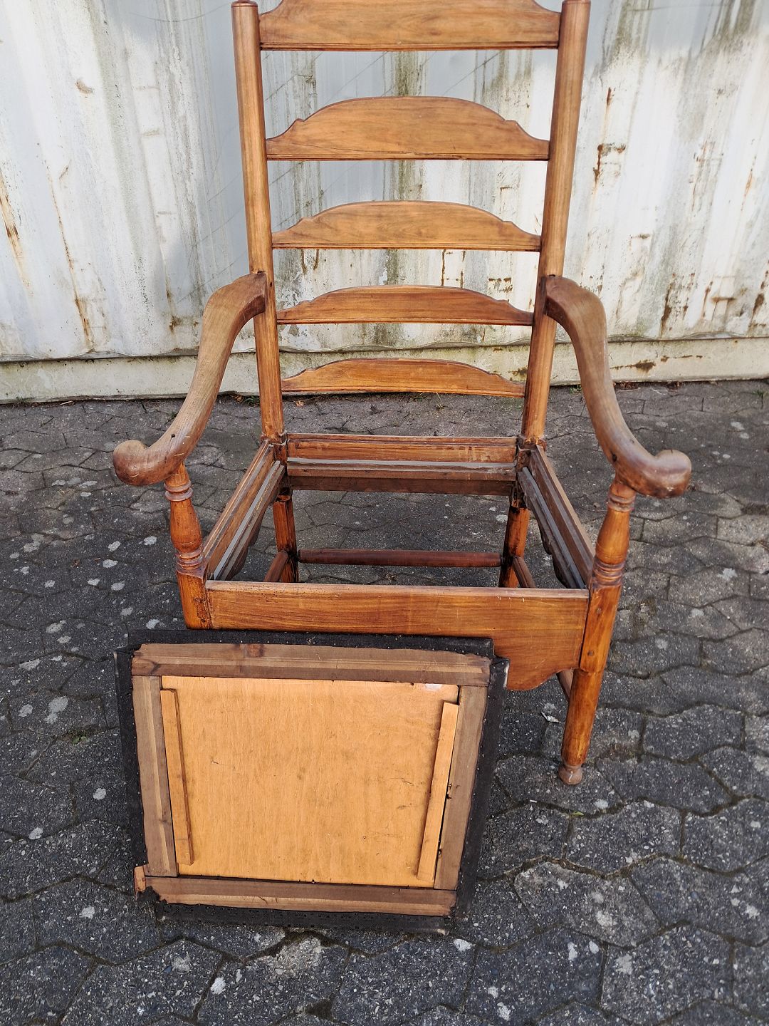 Gammel armstol i massivt træ, fra 1900erne.