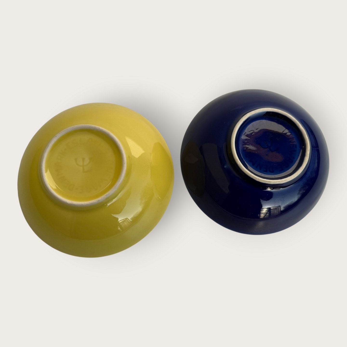 Eslau ceramics, two bowls: one blue and one yellow, 12cm in diameter *Good condition*