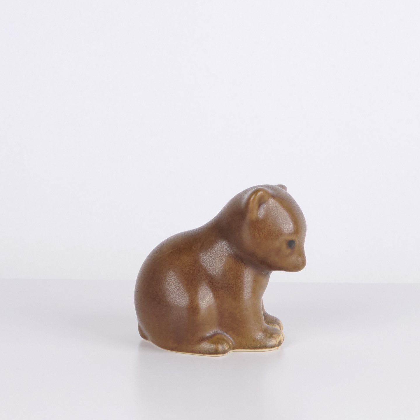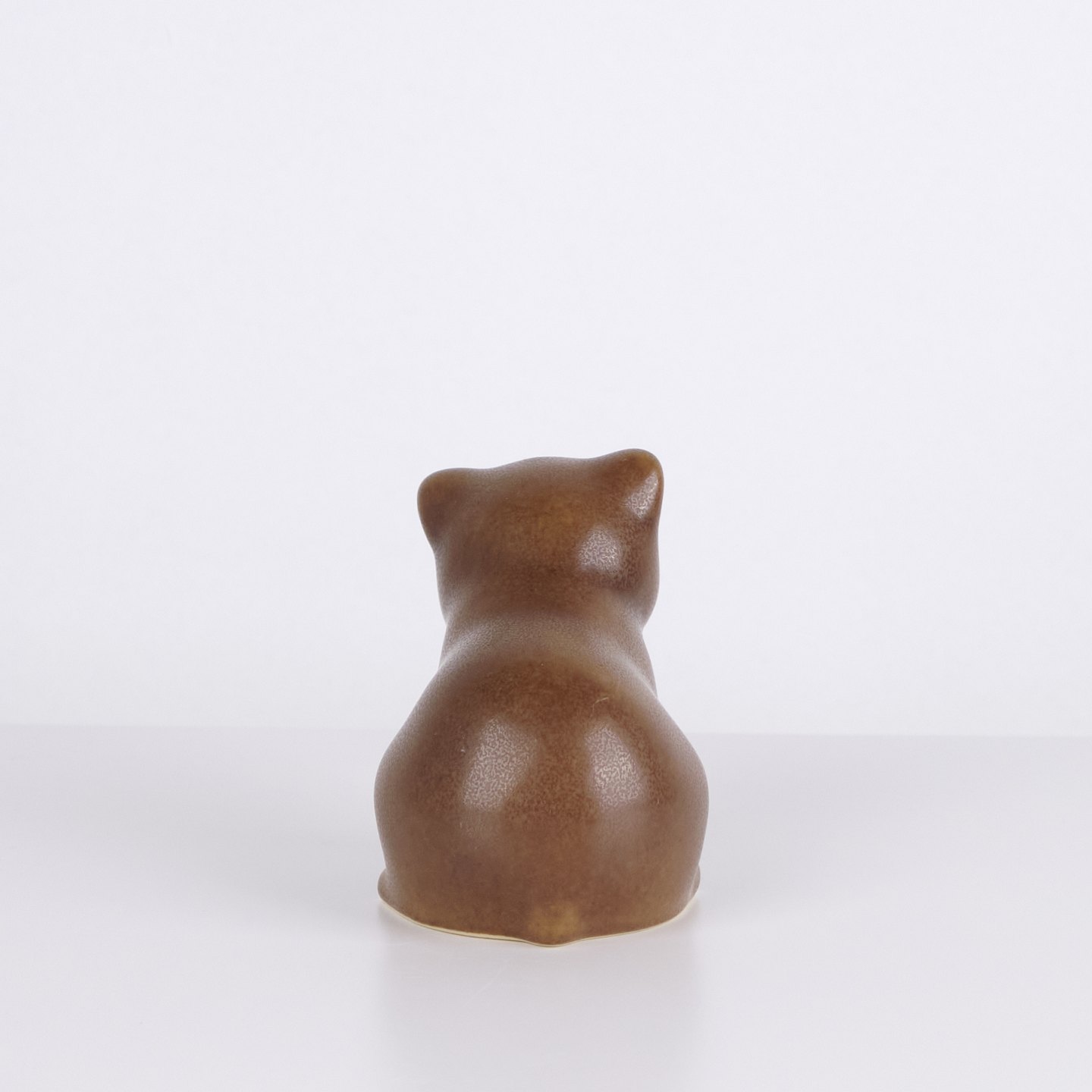 Cat figure by Knud Basse made in glazed ceramic. The figure has soft organic shapes and a calm stylized expression, characteristic of Knud Basse’s popular animal figures. Danish art pottery and sought-after collector’s item from the mid-century period.