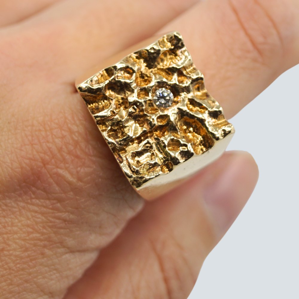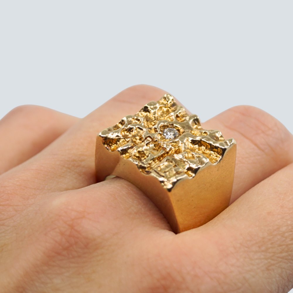 Ejvind Sørensen; Large signet ring in 14k gold with diamond, approx. 0.10 ct. Strong quality. Weight: 50 grams.