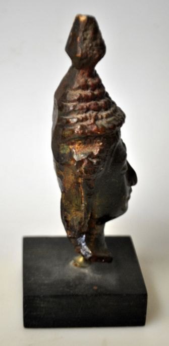 Antique Buddha in carved stone, 19th century. On a small wooden base. H.: 13 cm. Height with base: 15 cm.
