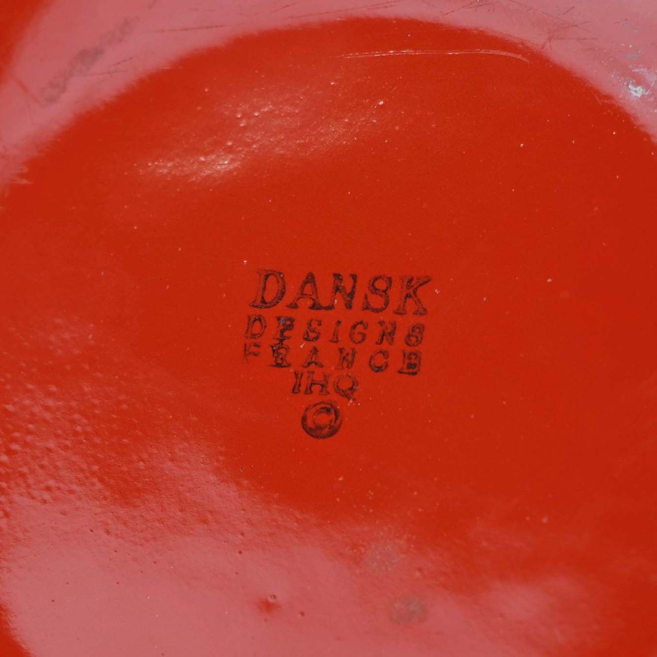 Kasserolle med låg fra serien Kobenstyle fremstillet i metal og belagt i rød og hvid emalje. Model France