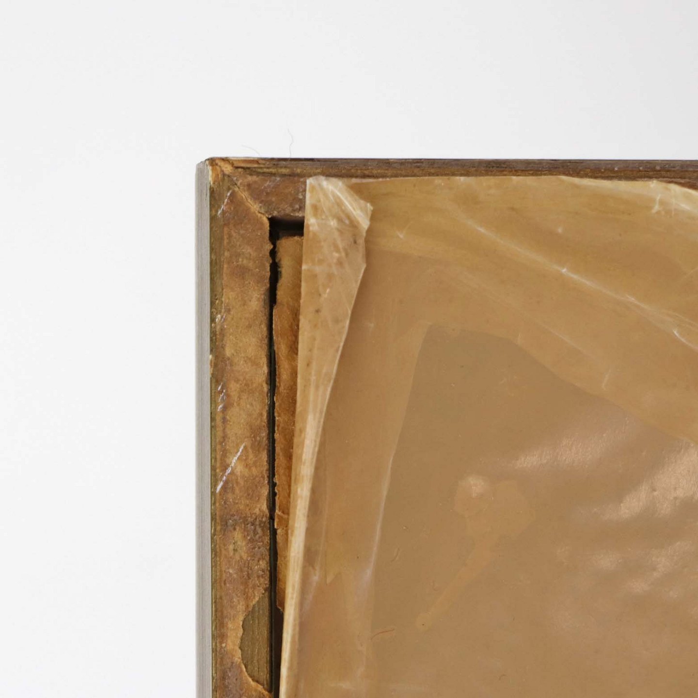 Fremstår med alderspræget papir samt brugsspor på rammen