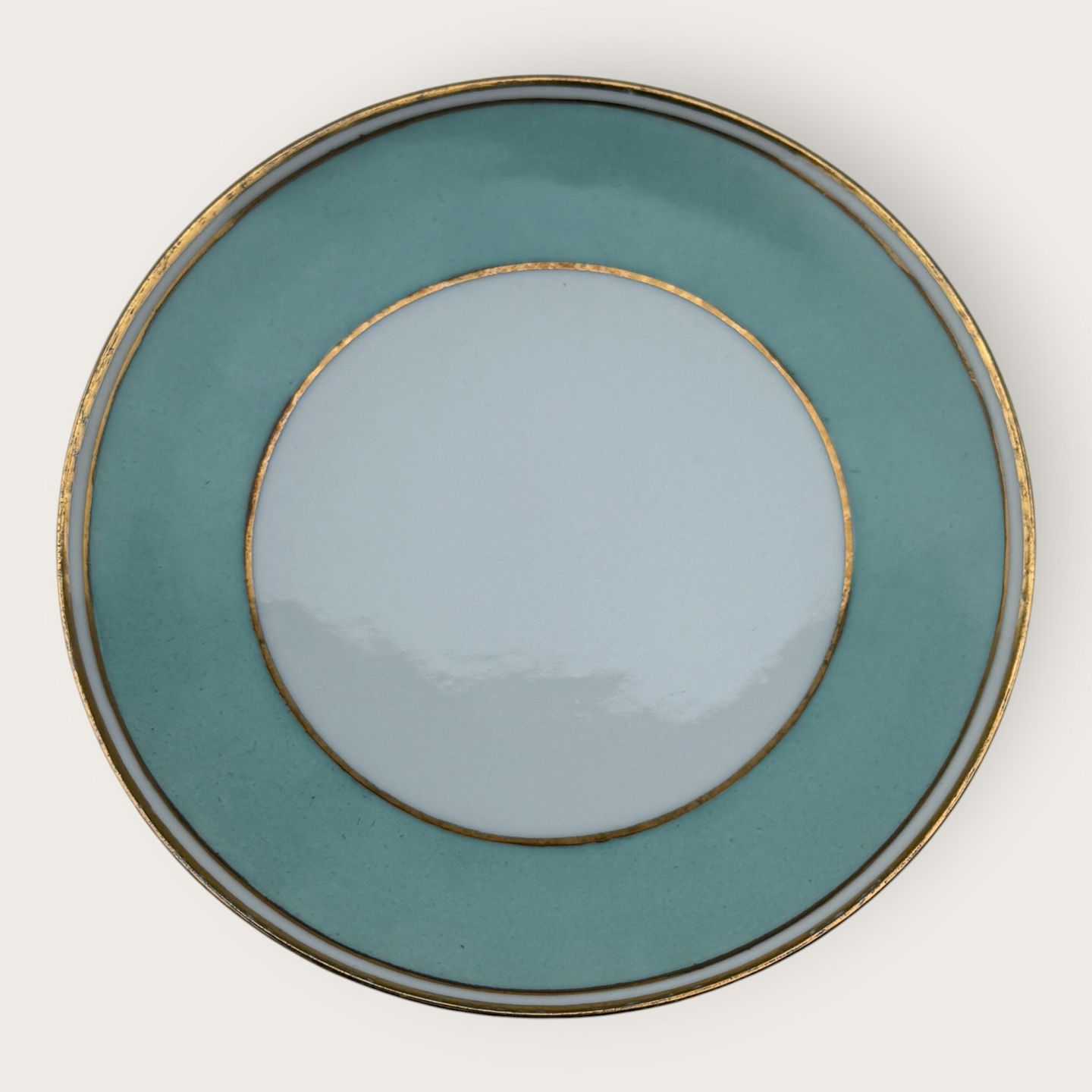 Bing & Grondahl, Form 643 with wide turquoise decoration and gold rim, cake plate, diameter 15cm, 1st grade, *nice condition*