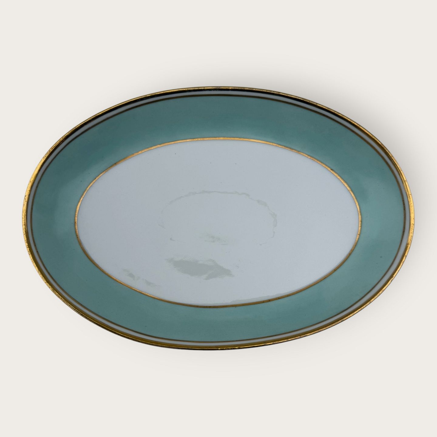 Bing & Grondahl, Form 643 with wide turquoise decoration and gold rim, Serving platter, 24.5x16.5cm, 2nd grade, *nice condition*