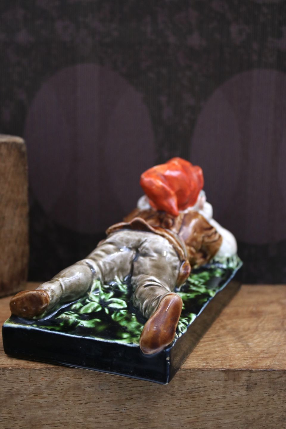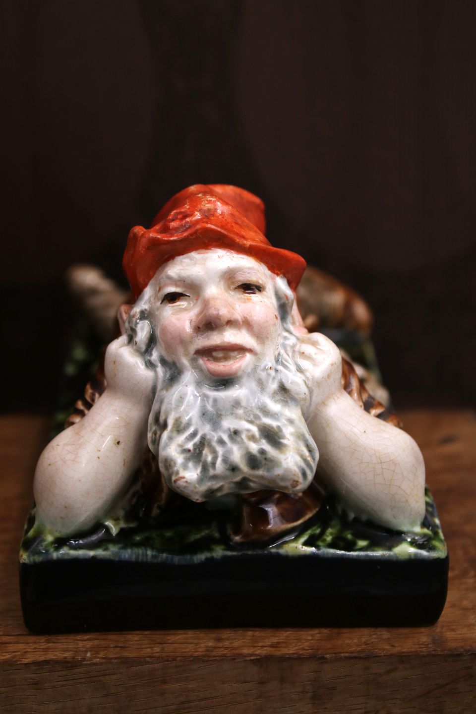 Antique, German ceramic elf in fine majolica glaze from approx.1880.