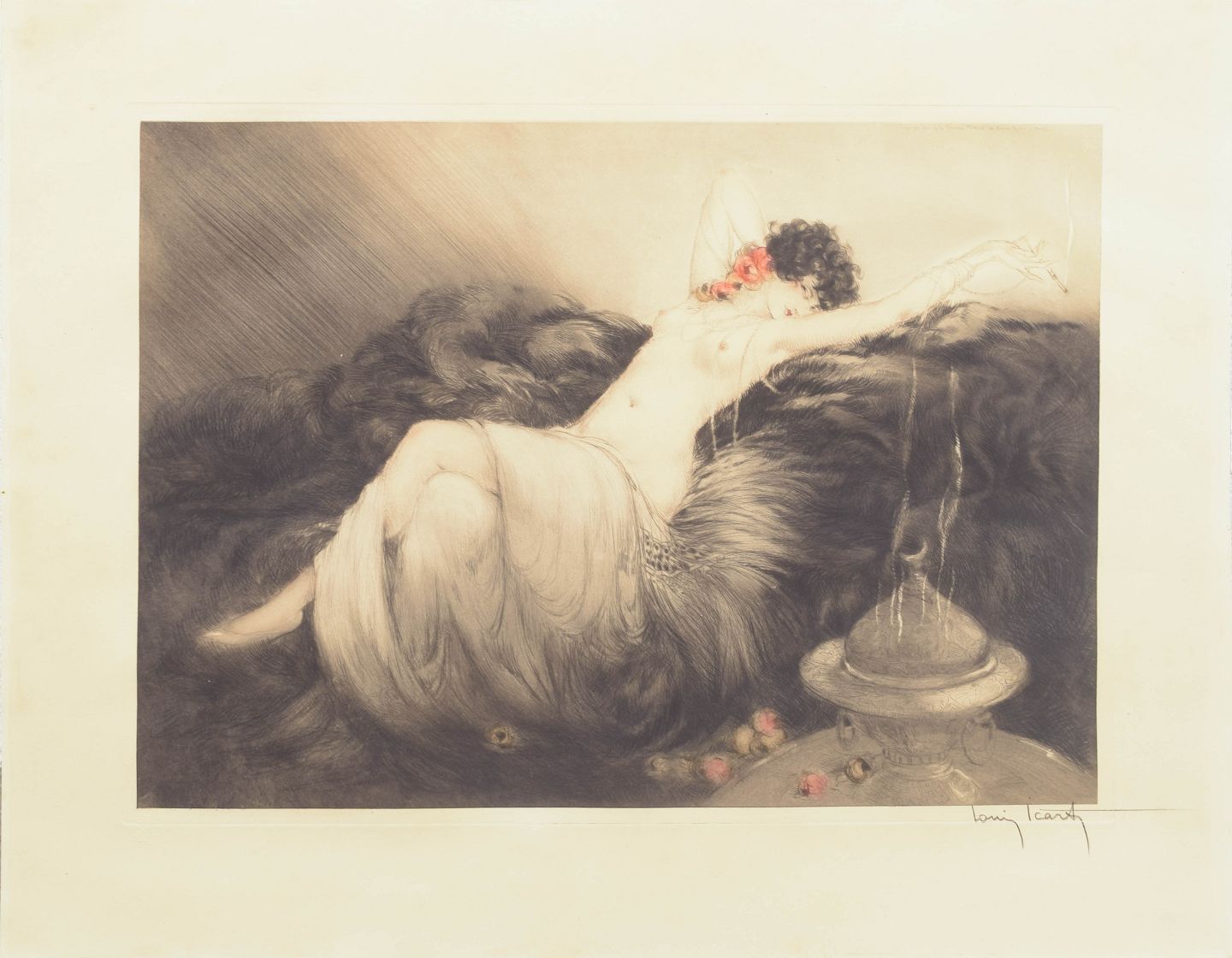 Louis Icart (1888–1950) was a French painter, graphic artist, and illustrator, born in Toulouse and later active in Paris. He became one of the leading figures of the Art Deco period, particularly known for his elegant and sensual depictions of women, often produced as etchings using aquatint and drypoint techniques. Icart also worked in fashion illustration and book art, gaining wide popularity in both Europe and the United States during the interwar years.