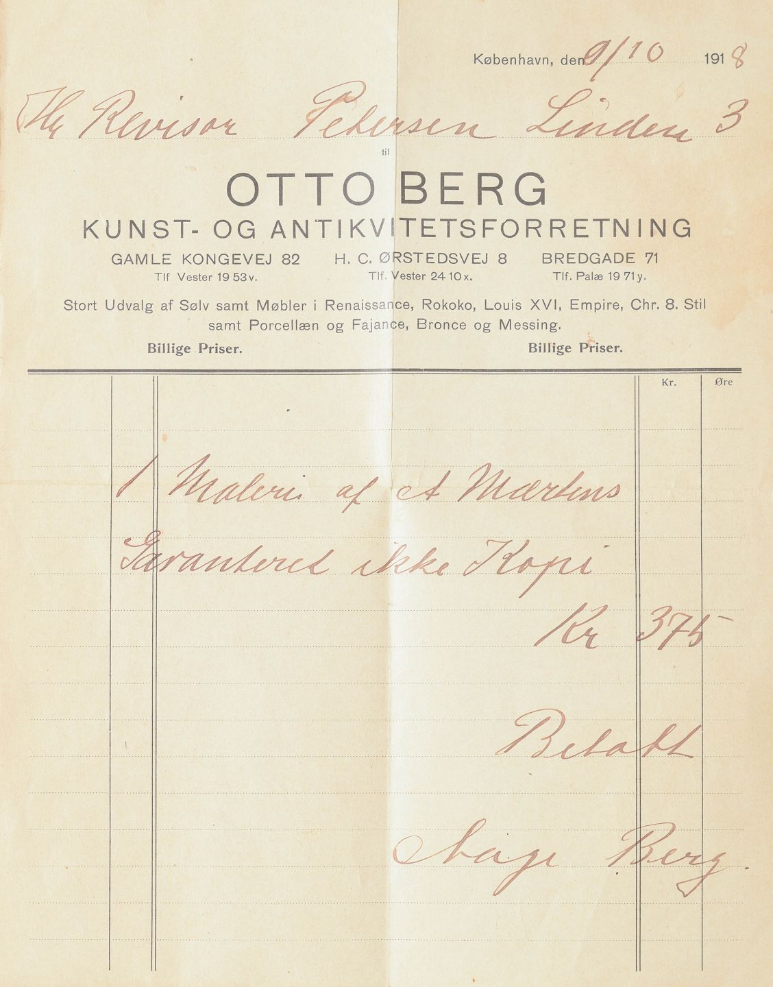 Accompanied by the original invoice from Otto Berg Kunst- og Antikvitetsforretning, Copenhagen, dated 1918.