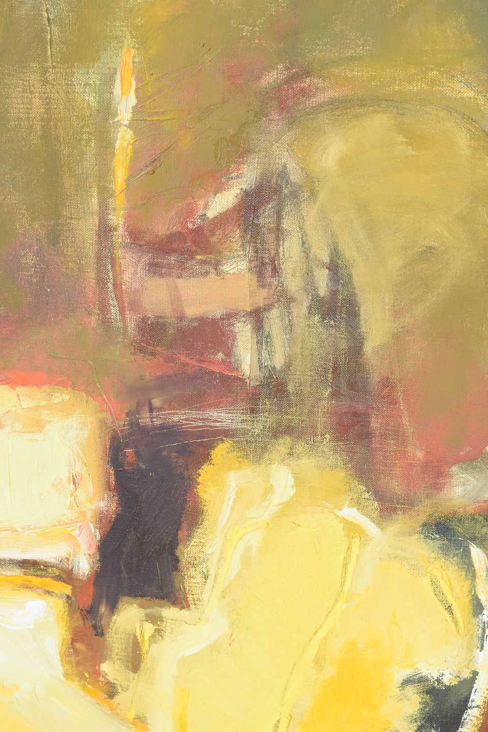 Abstract composition executed in oil on canvas with subtle figurative elements and soft, dissolved forms in warm tonalities. Signed.