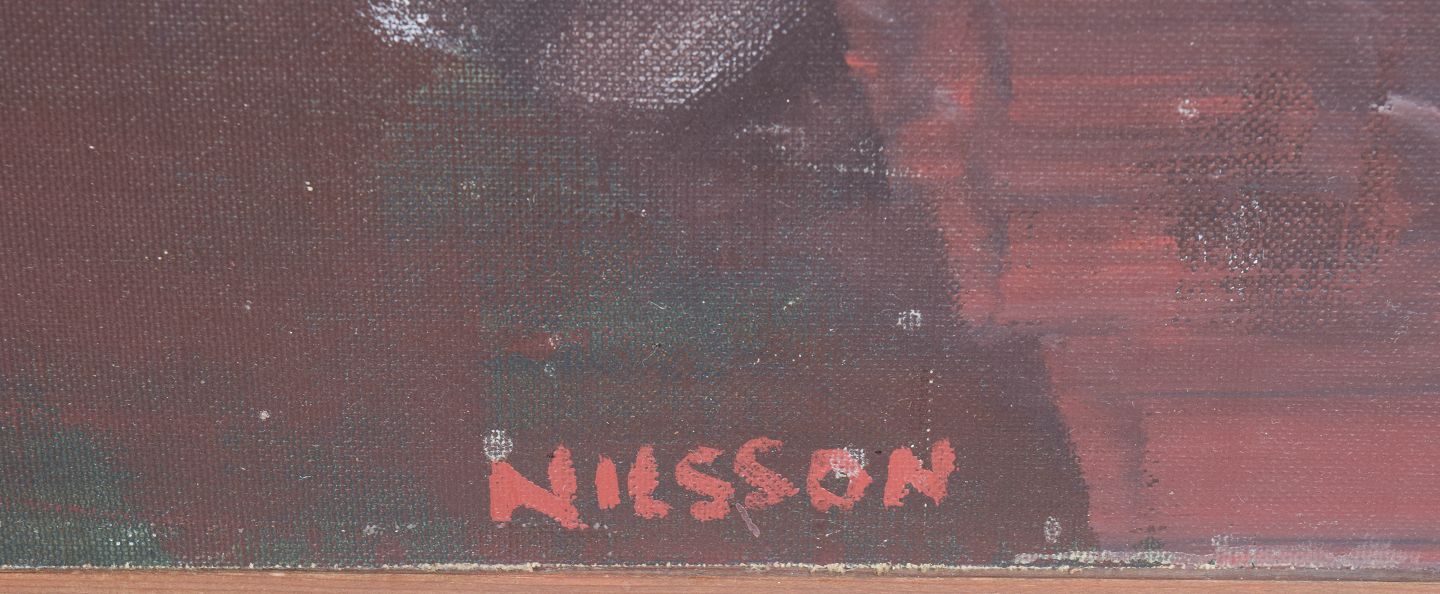 Göran Nilsson (1930–2014) was a Swedish graphic artist, cartoonist and painter educated at the Royal Academy of Fine Arts in Stockholm, with further studies in Amsterdam and Madrid. He was a member of the influential IX group and worked across both printmaking and painting within a modernist, often abstract visual language. Nilsson is represented in major museum collections including the Nationalmuseum and Moderna Museet in Stockholm, reflecting his significance within post-war Scandinavian art.