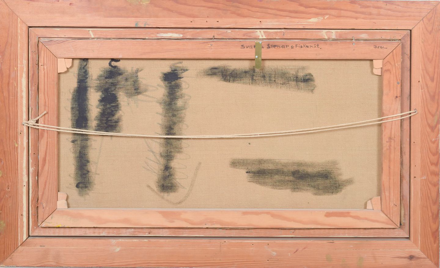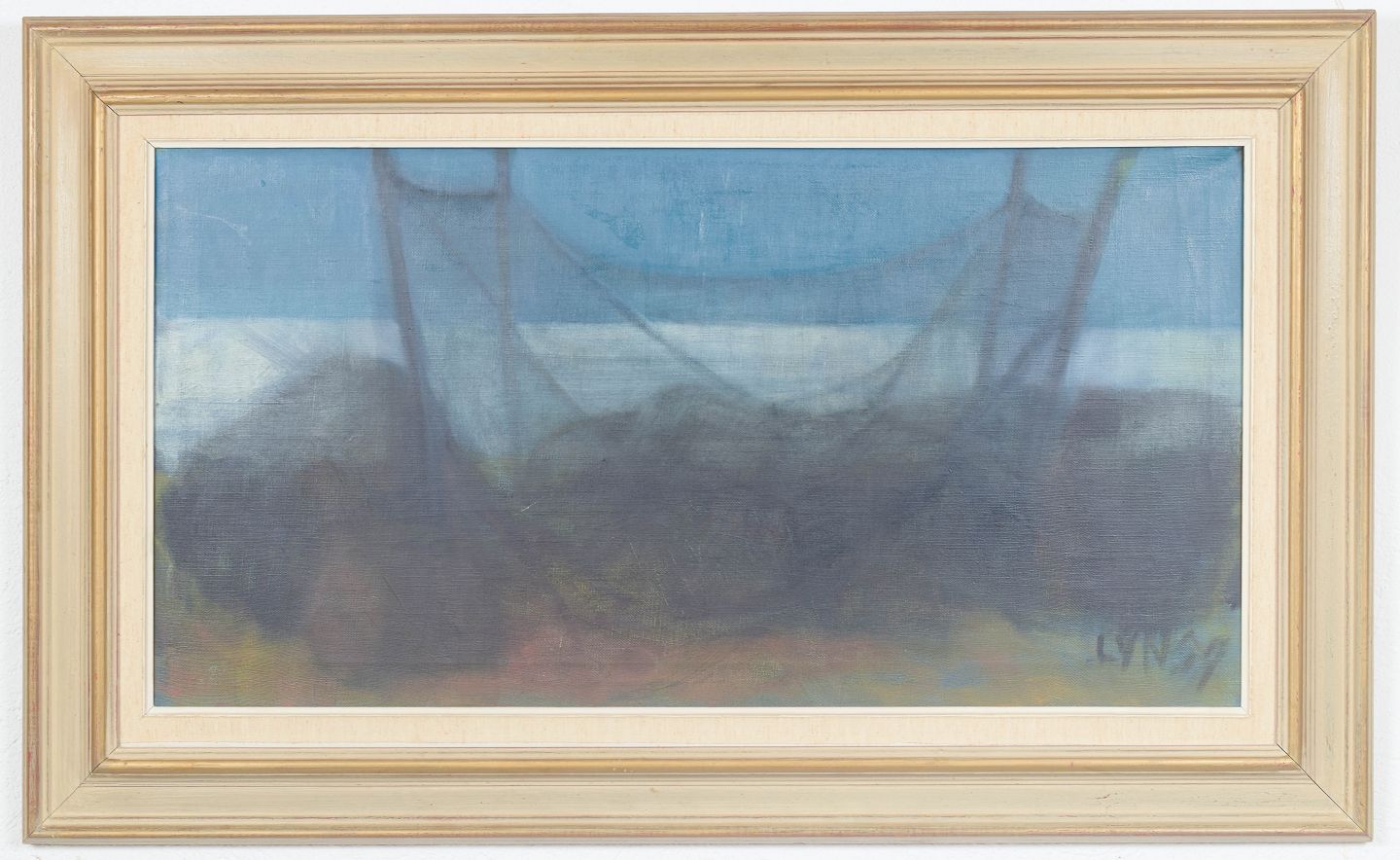 Lars Yngve Nilsson, “Svarta stenar o fiskenät”, oil on canvas, listed Swedish artist.