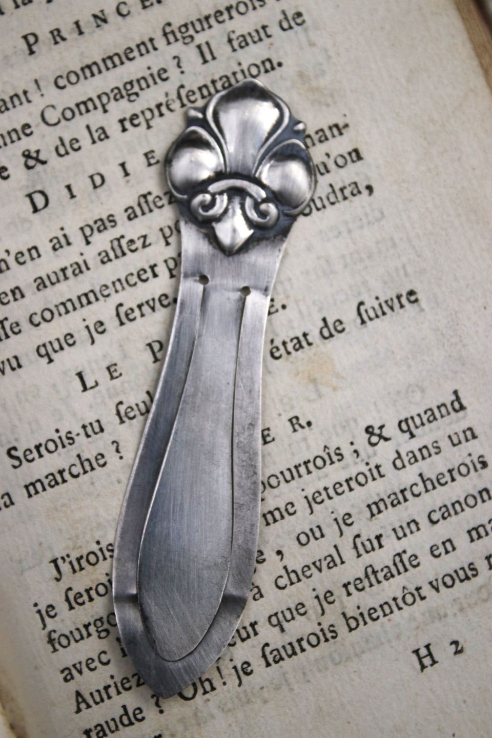 Old bookmark in silver with the French lily. Stamped 830s.