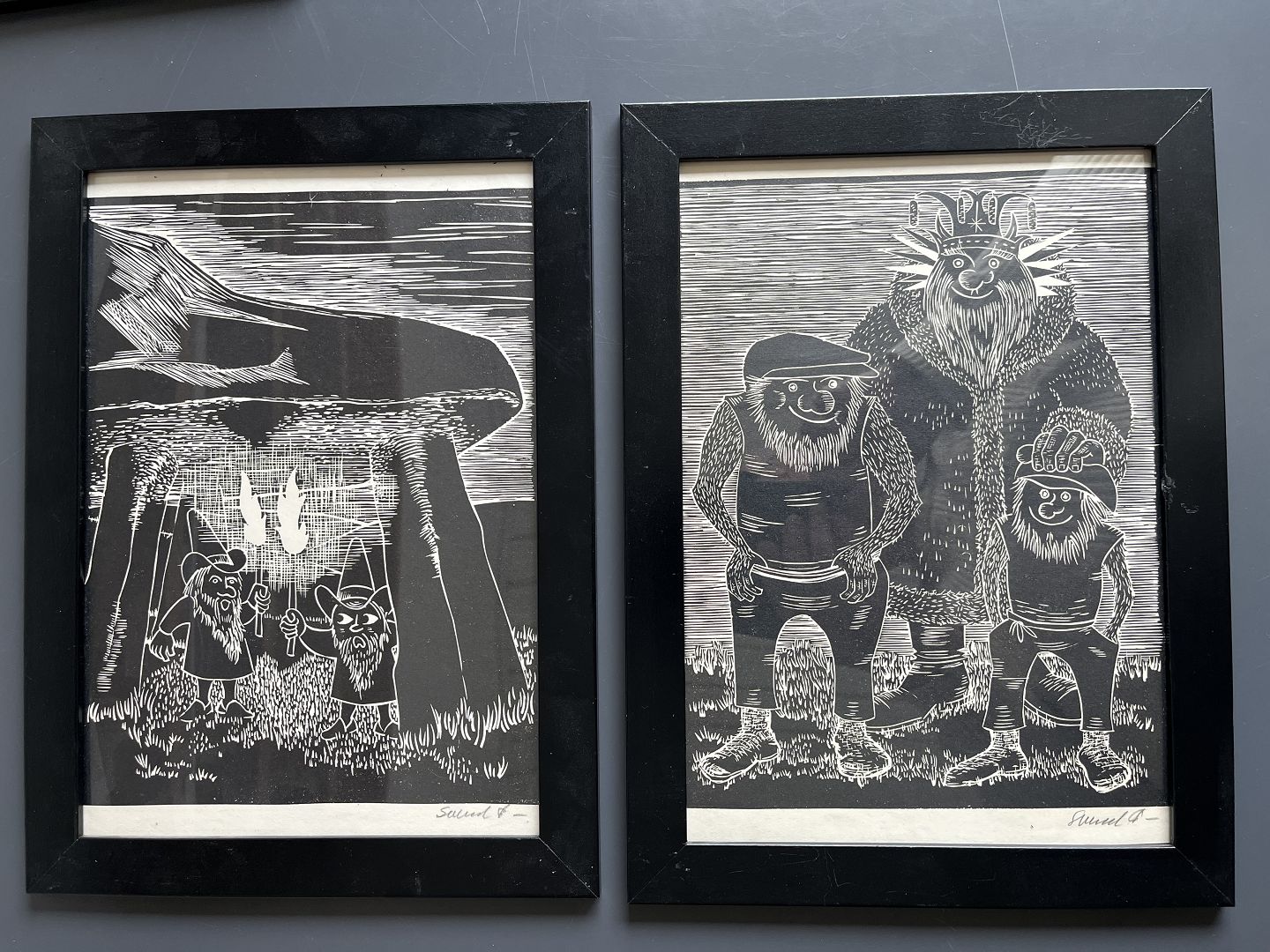 Text available in Danish: 2 linoleumssnit af Svend P. Jørensen 1973.