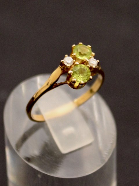 14 karat gold ring size 54 with 2 clear and two light green stones item no. 635271