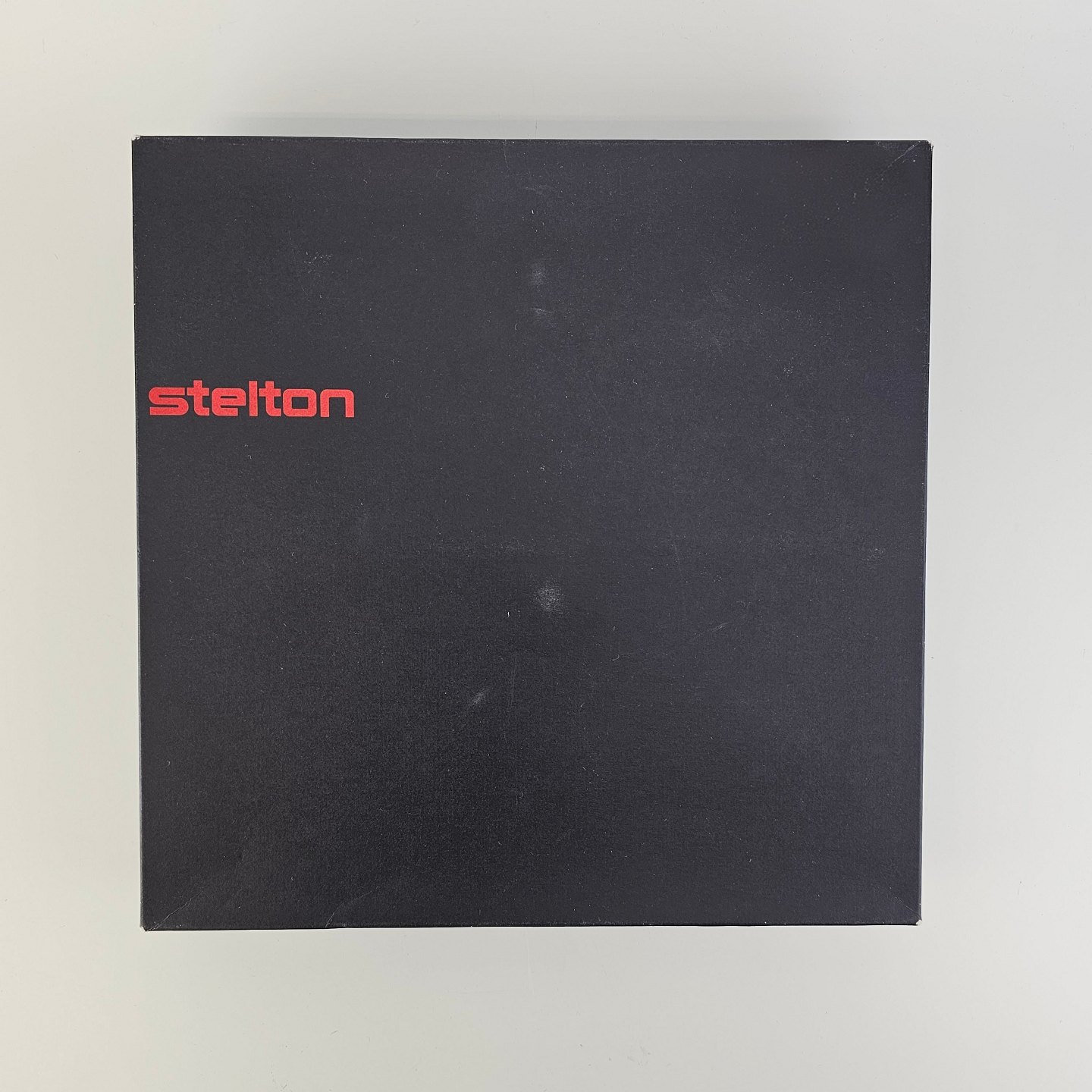 Sæt af fire servietringe i rustfrit stål med tilhørende servietter af sort stof