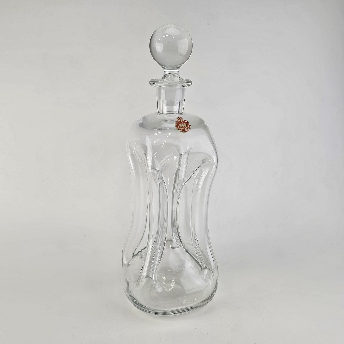 Klukflaske i klart glas med tilhørende prop med original mærke