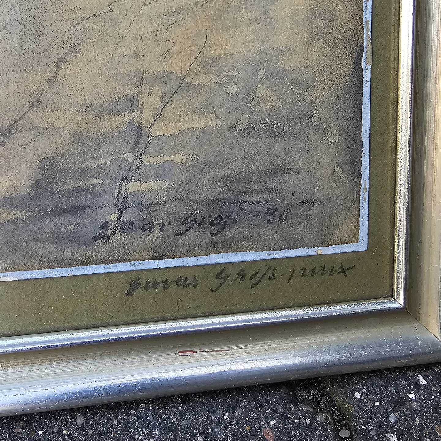Sæt af seks akvareller med motiver fra Aalborg by, monteret i trærammer og alle signeret