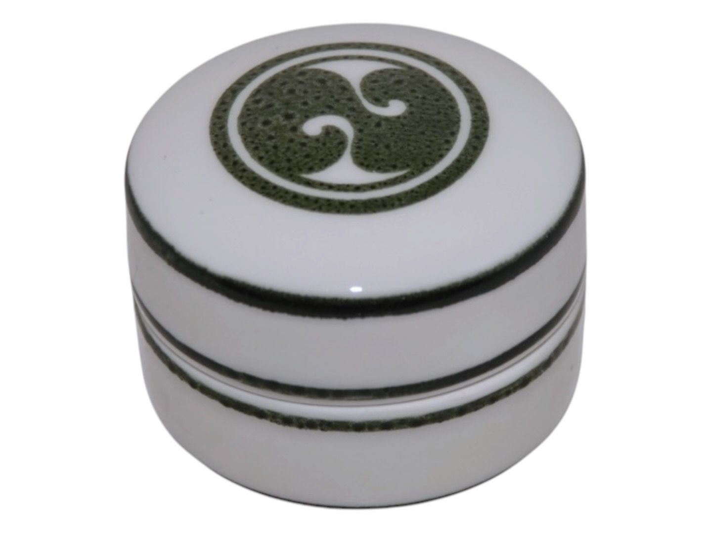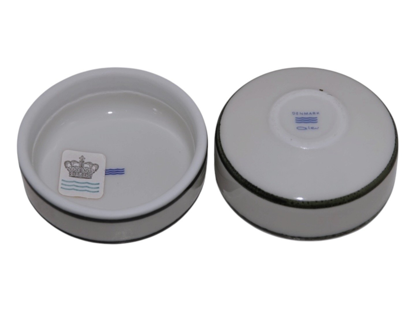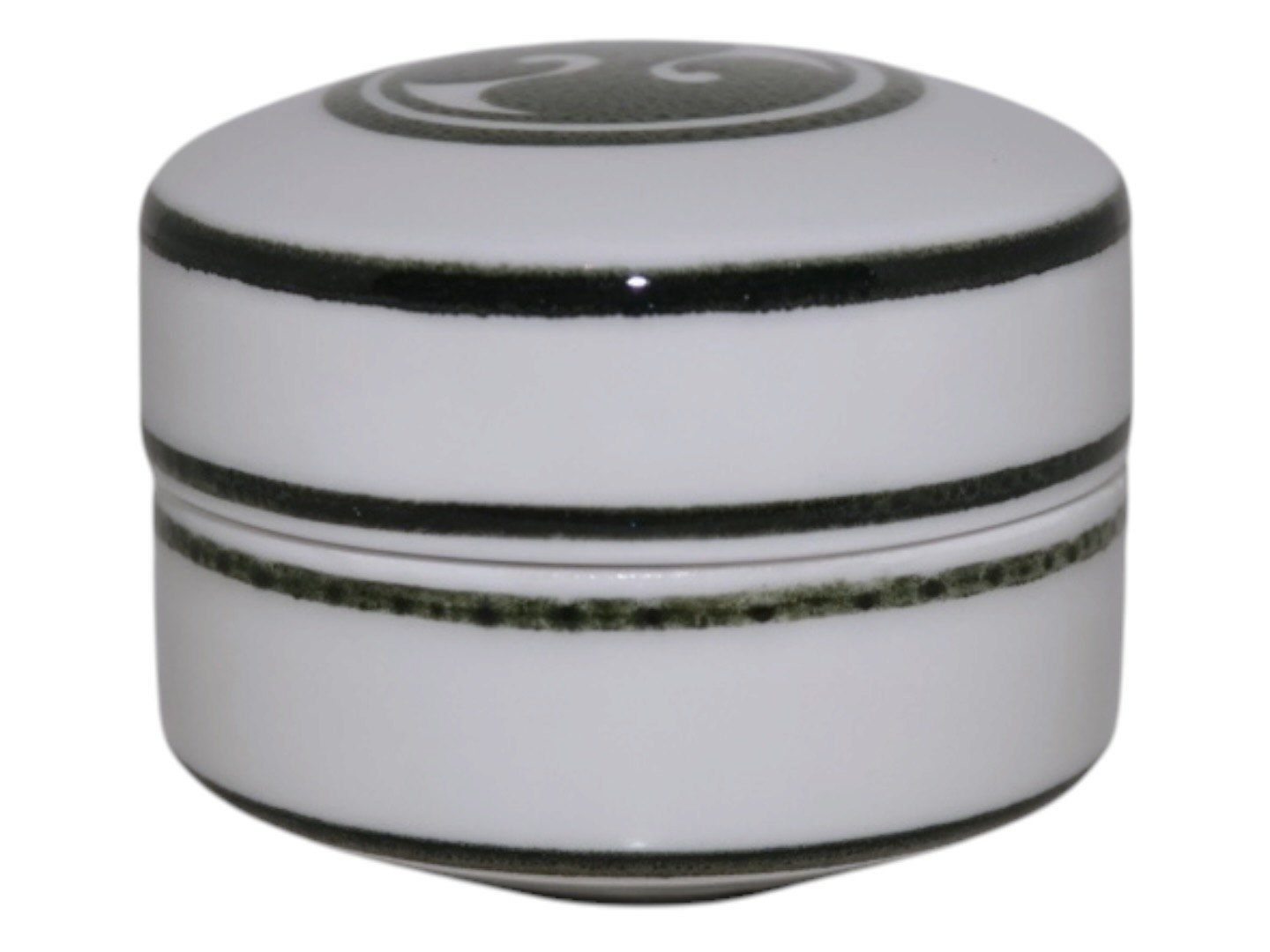 Royal Copenhagen art porcelain, small lidded box with green decoration designed by artist Alev Siesbye.