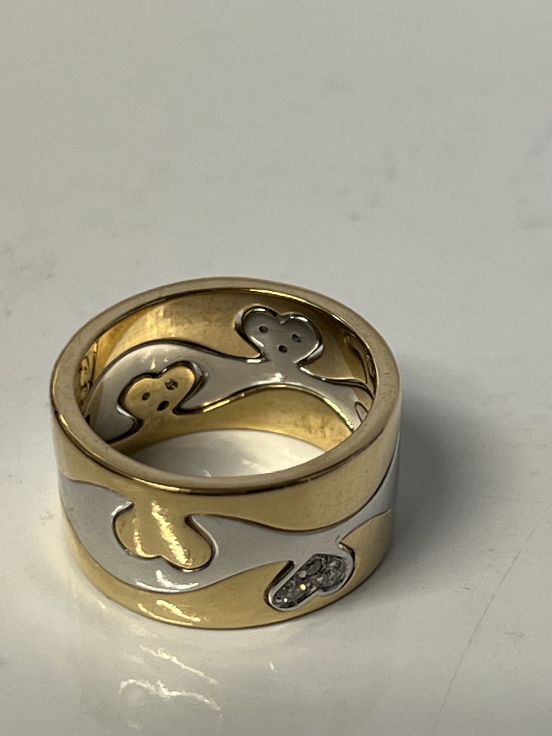 14 carat ladies' ring, with inlaid diamonds, in red and white gold.