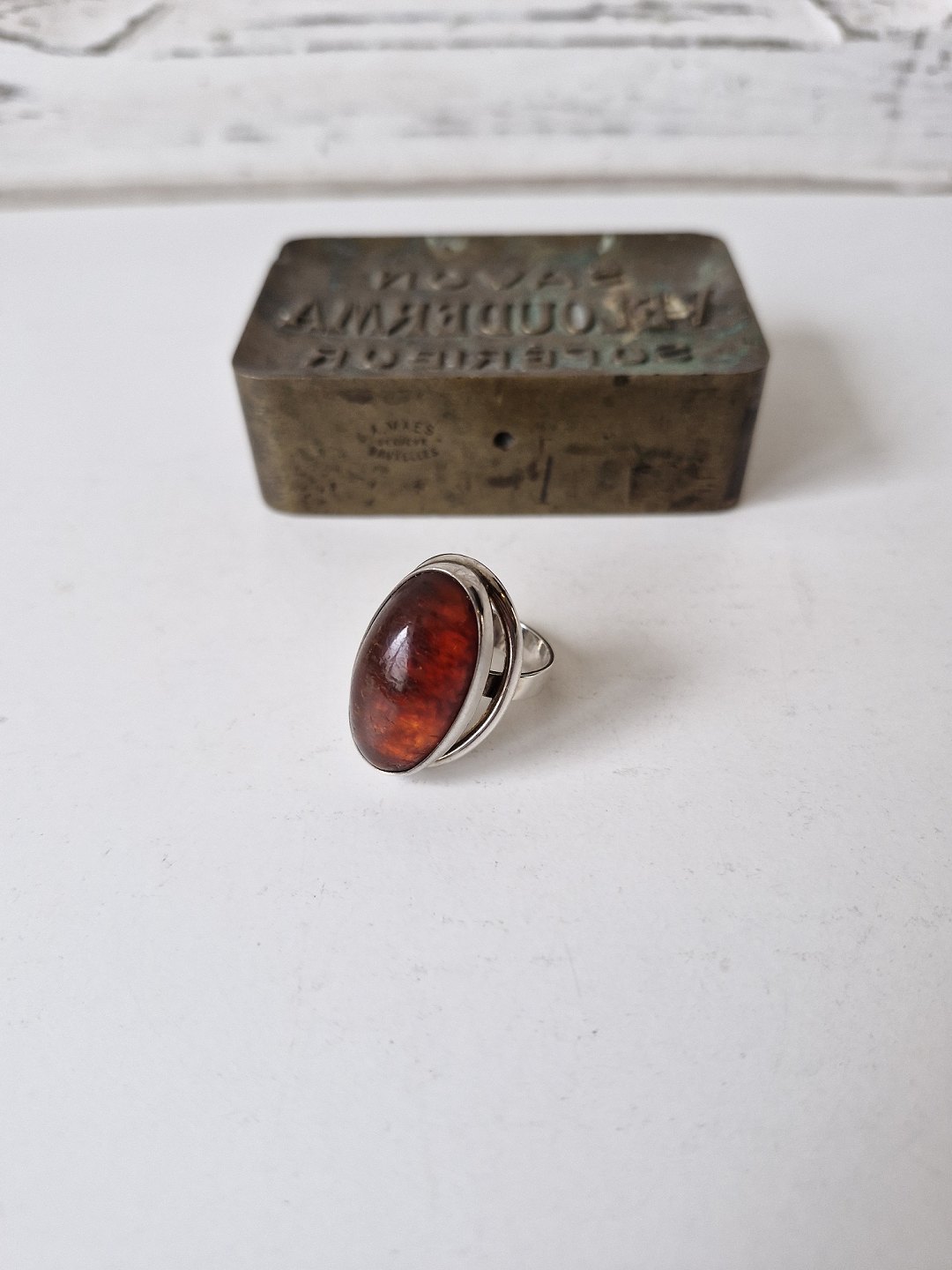 N.E.From vintage ring in sterling silver with oval amber pearl