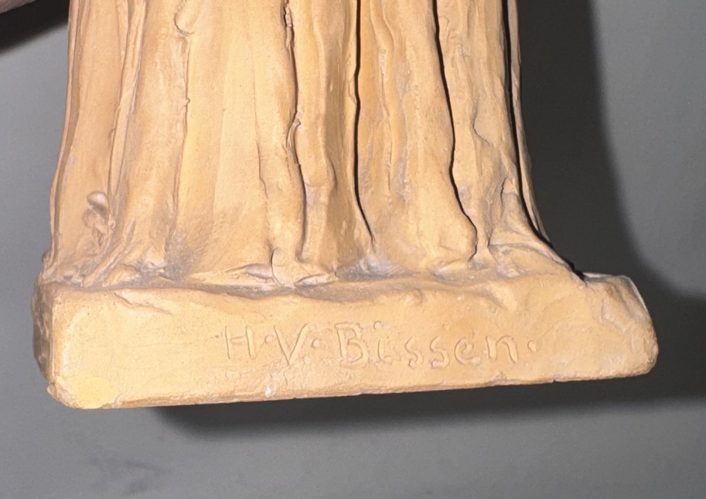 H. V. Bissen (1798-1868): Figure of a standing woman. Made of earthenware. The artist's name engraved on the back of the base. In good condition without damage or repairs. Signed with monogram and 1918 inside? Height: 22.5 cm.
