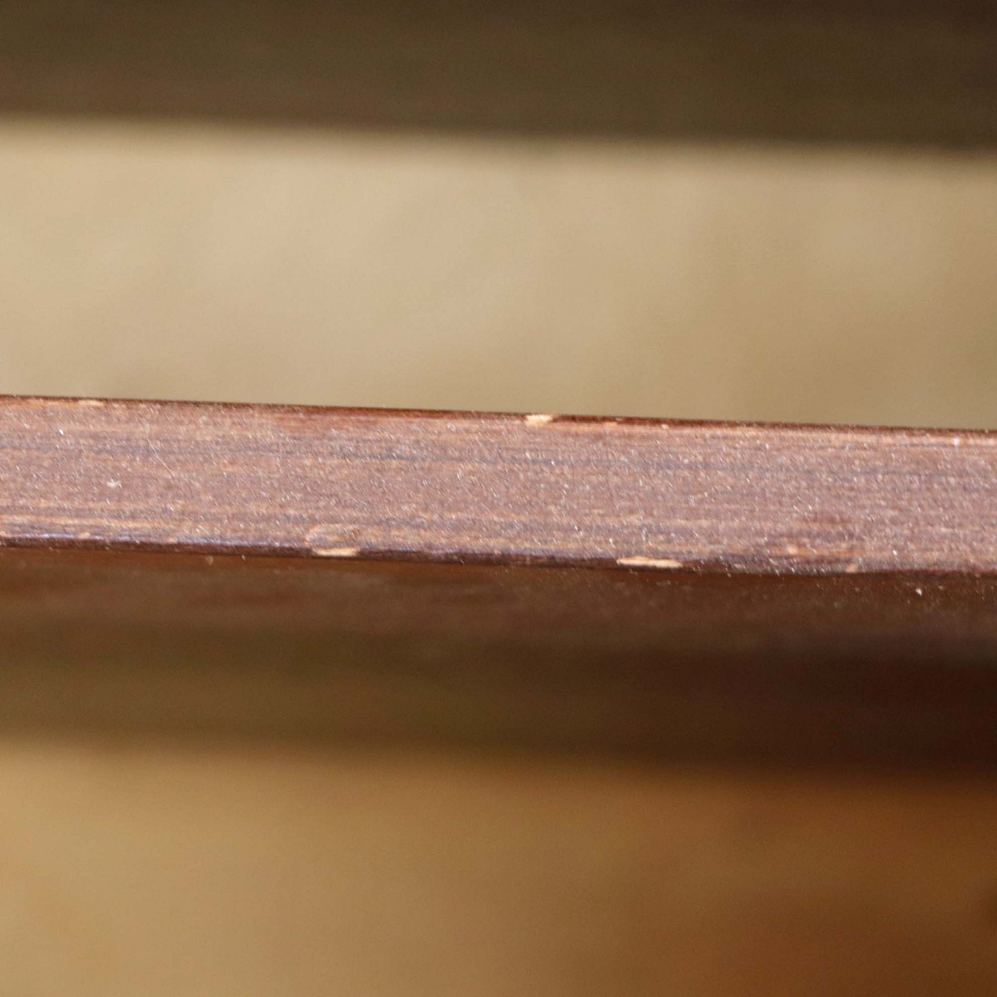 Fremstår med mindre brugsspor på træstellet samt et vandmærke på topkanten af lærredstoffet.
