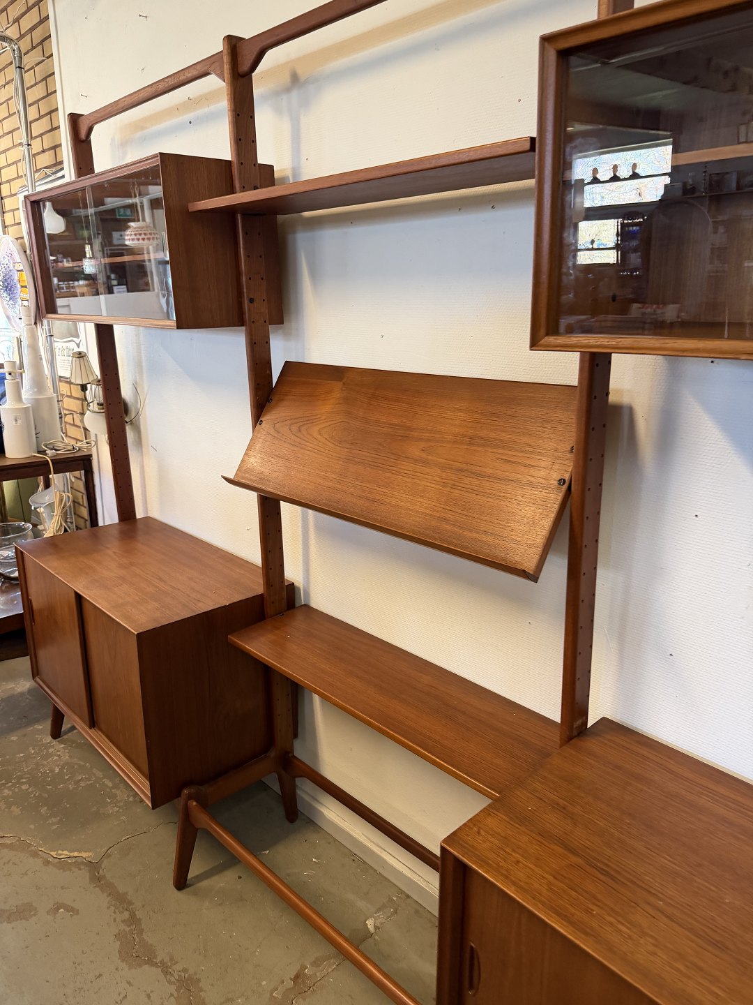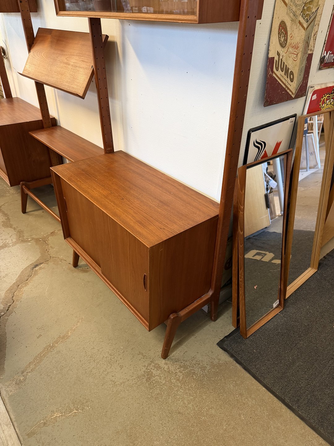 Her har du muligheden for at få fingrene i en sjælden og eftertragtet fritstående reol designet af Erik Buch – udført i smuk, varm teak med den helt rigtige patina 👌