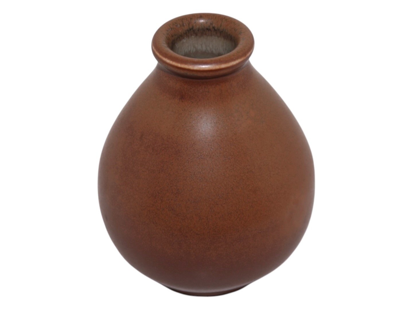 Small Bing & Grondahl ceramic vase in a modern simple style with a light brown glaze.