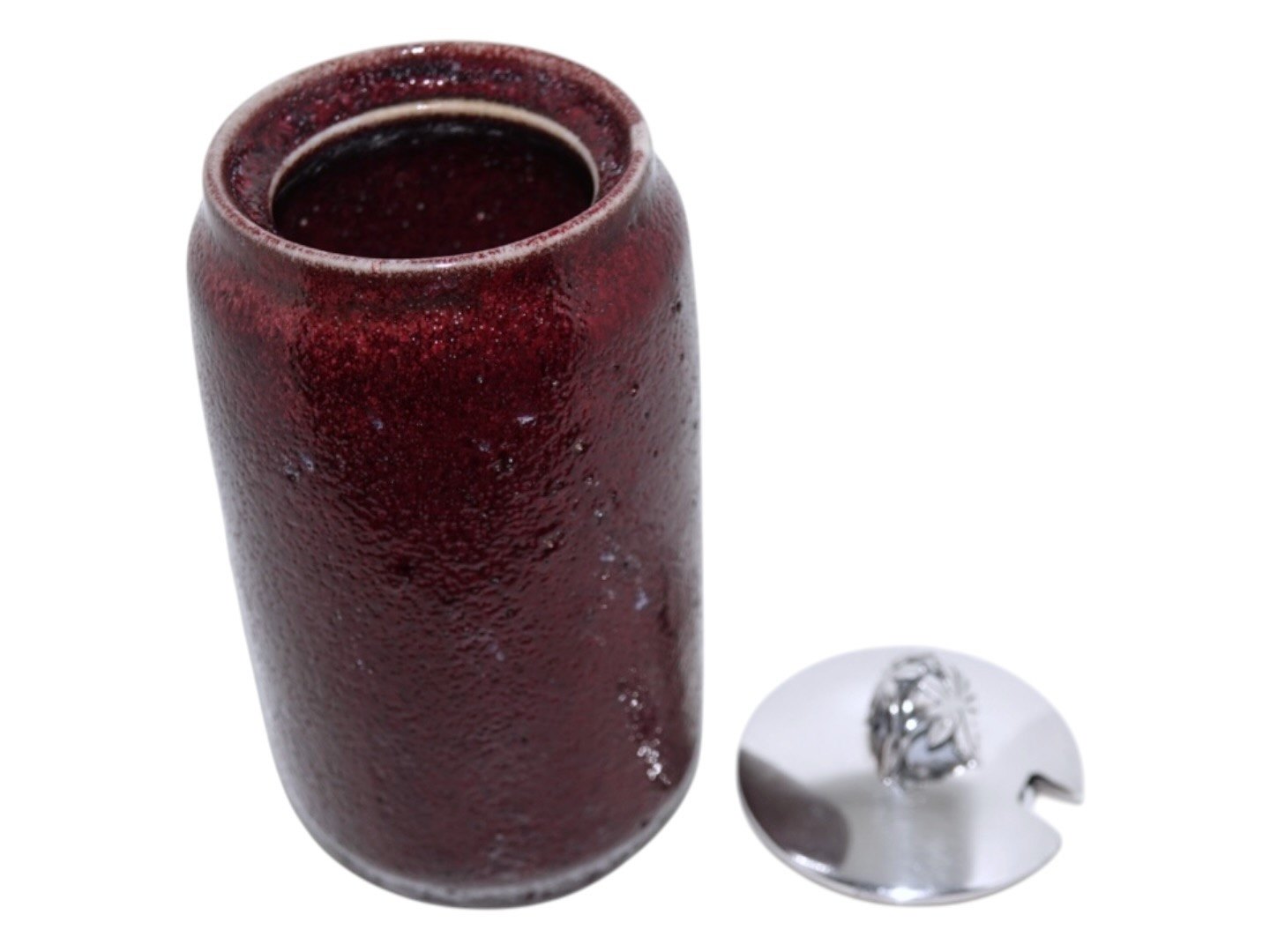 Vase with oxblood glaze and a silver lid
