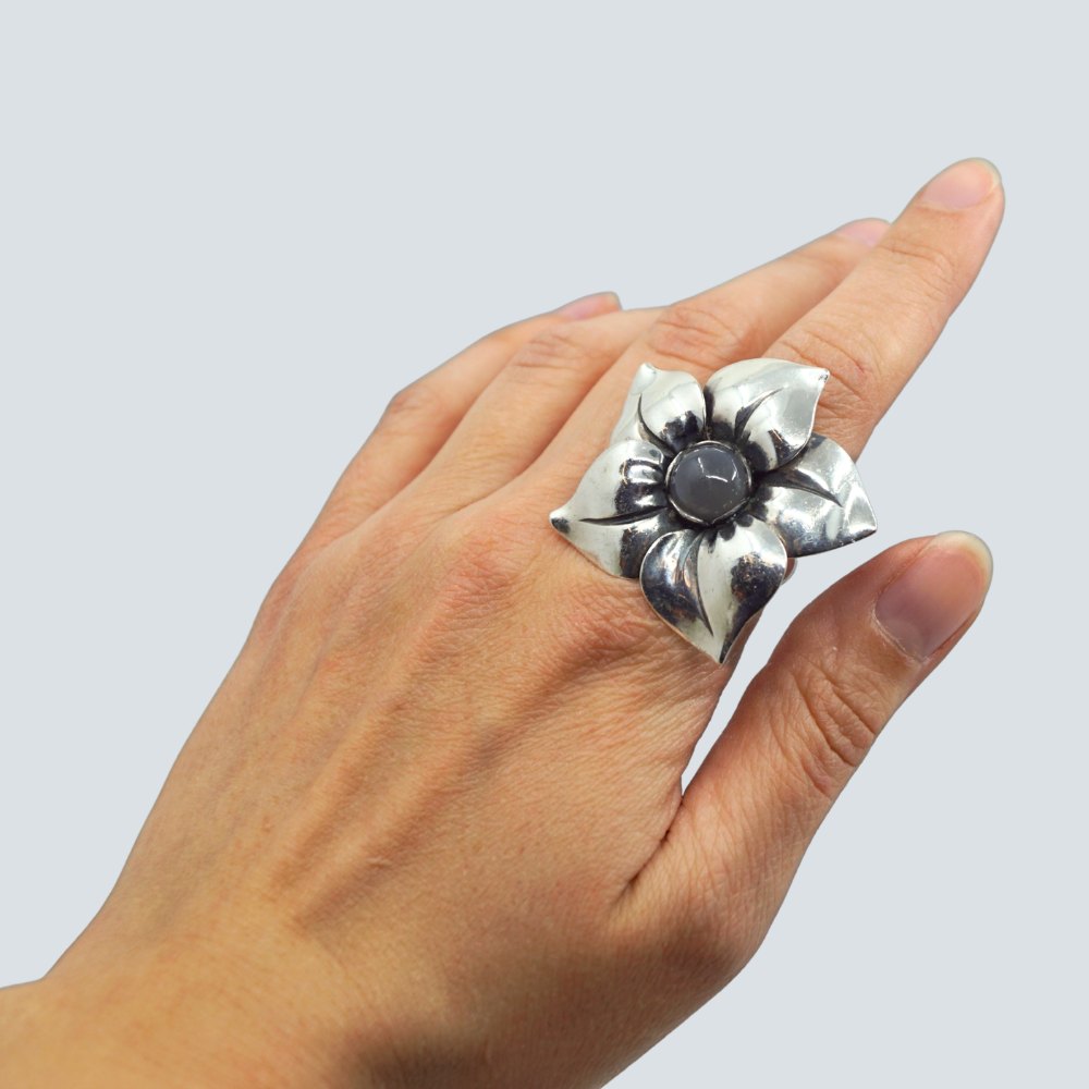 Regitze Overgaard for Georg Jensen; Flowerring in silver with moonstone, no. 562b