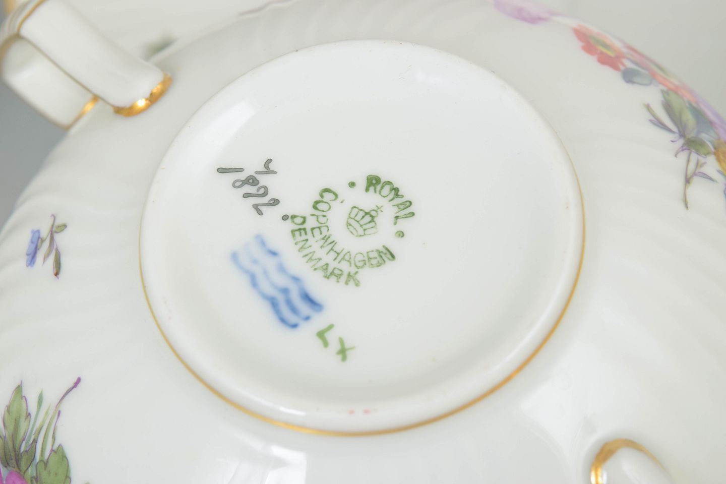 Royal Copenhagen was founded in 1775 and is one of Denmark’s most renowned porcelain manufacturers. The factory is known for its hand-painted porcelain and high standards of craftsmanship, with each piece individually decorated by skilled painters. Patterns such as Saxon flower reflect a long European tradition of floral porcelain decoration and remain highly sought after by collectors today.