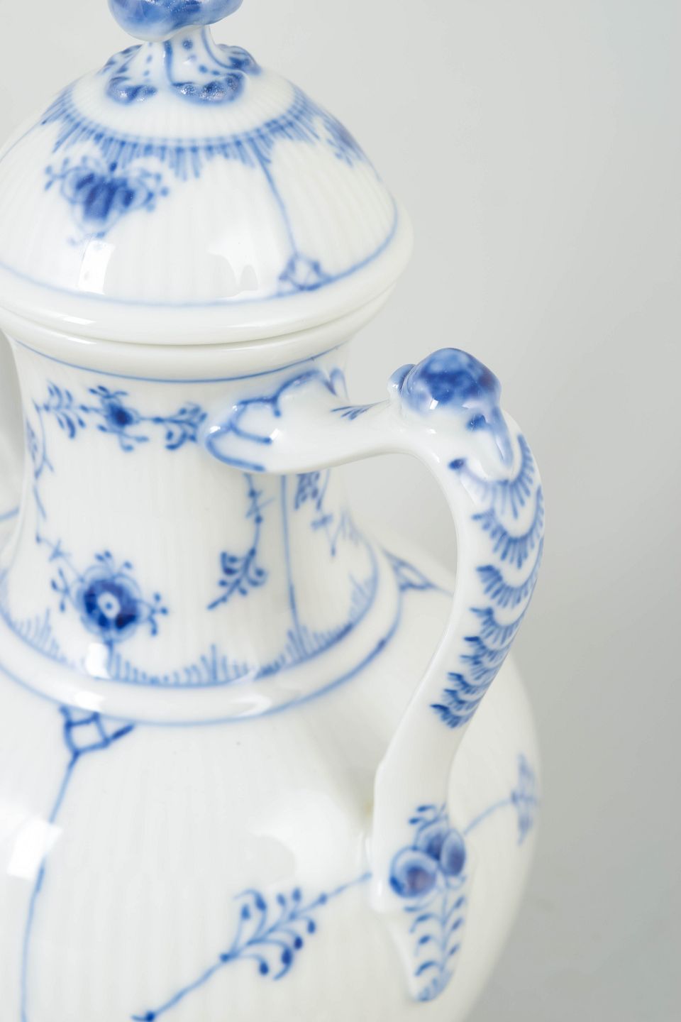 Elegant espresso pot in white porcelain with hand-painted blue Blue Fluted Plain decoration, model 1/47 from 1960, 1st factory quality.