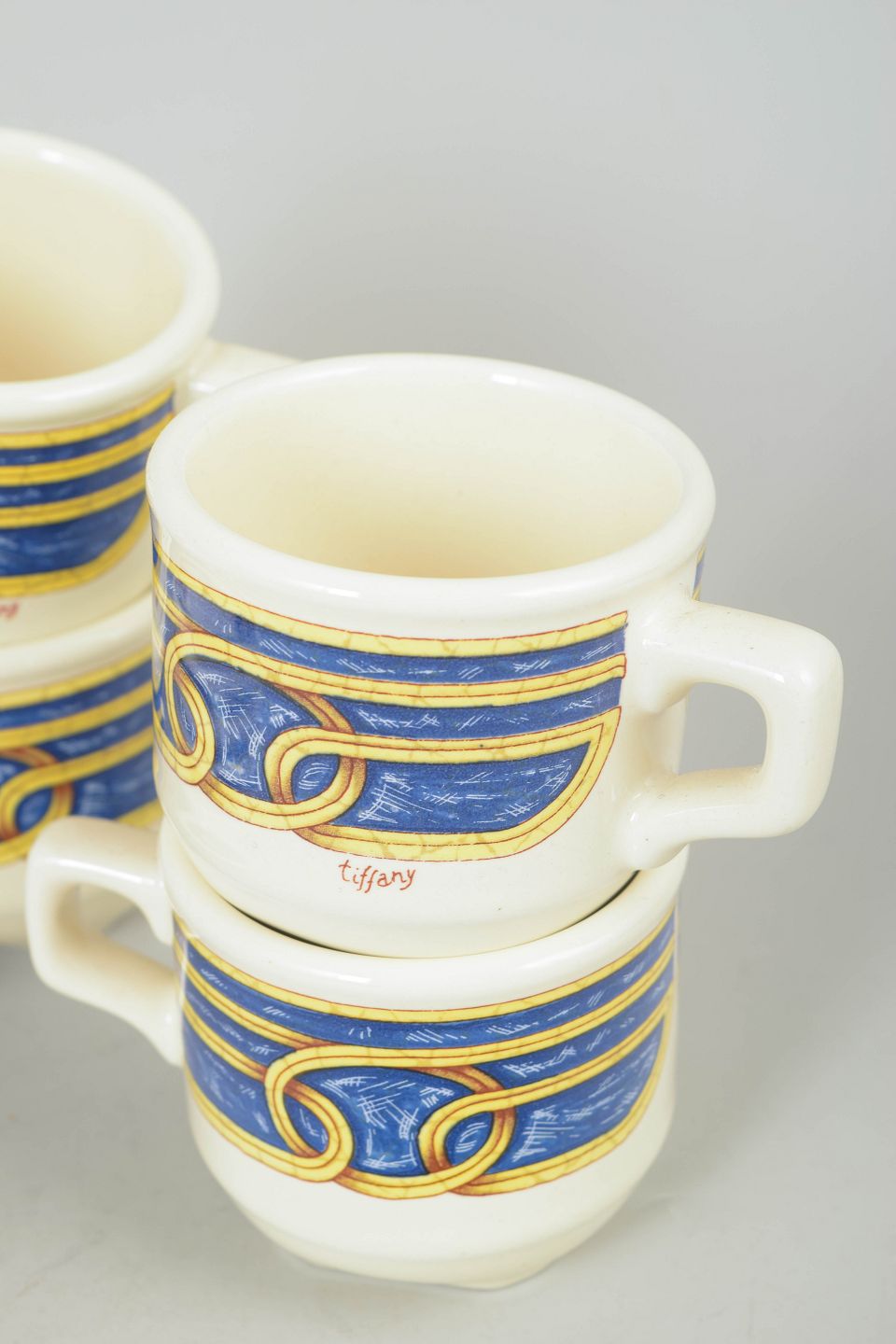 Tiffany Boutique, set of four espresso cups with saucers.