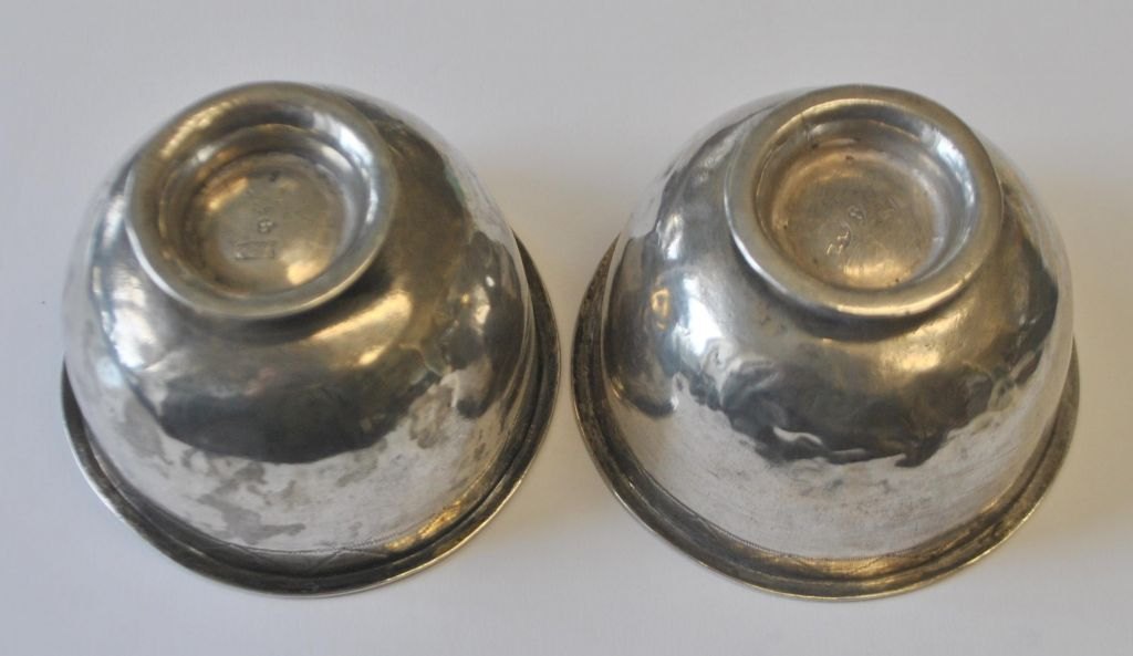 Pair of Swedish silver goblets, Peter Neiindorff, Lidköping (1797 - 1835). On stand edge. With decorations on corpus. Stamped. Height: 4 cm. Dia.: 6 cm.