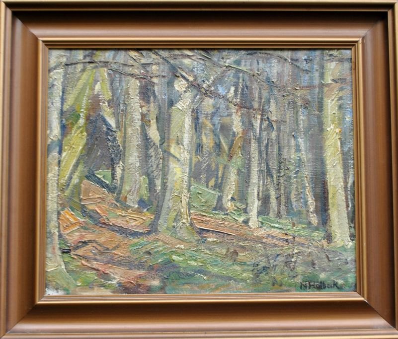 Holbak, Niels (1884 - 1954) Denmark: Forest. Oil on canvas. Signed. H: 33 cm. W: 41 cm.
