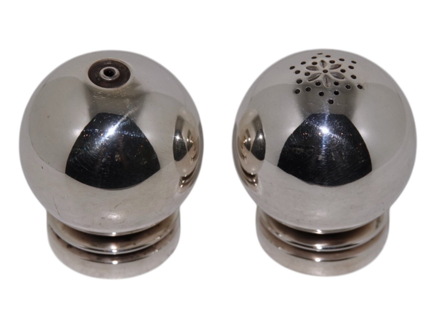Georg Jensen sterling silver salt shaker and pepper shaker.